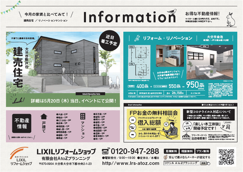 LIXILリフォームショップAtoZプランニングの開催イベントが5月20日㈭に行われます。