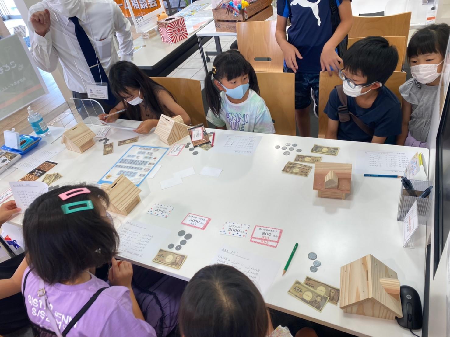 ワークショップでは、貯金箱を作れる木工教室、デコレーションをしてオリジナルのエコバックが作れるデザイン教室、楽しく学べるお金教室を
