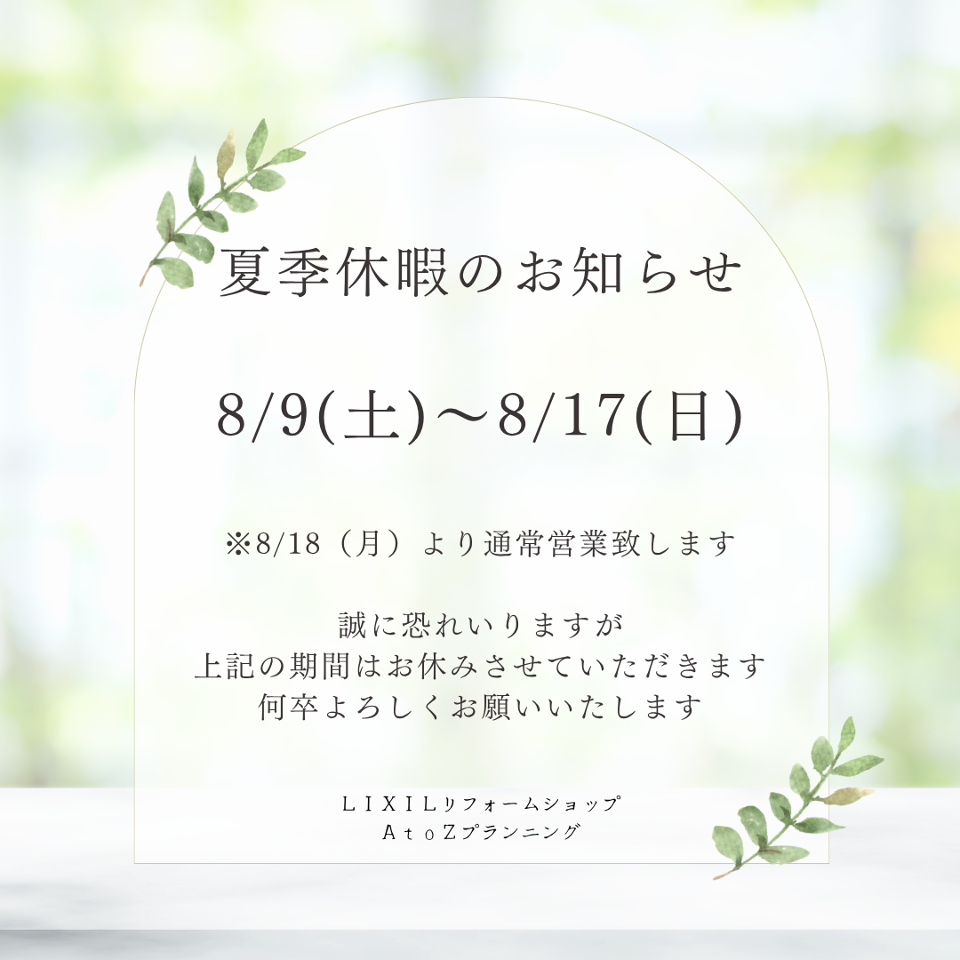 誠に勝手ながら下記の期間を夏季休業とさせていただきます8月9日(土)~8月17日(日)