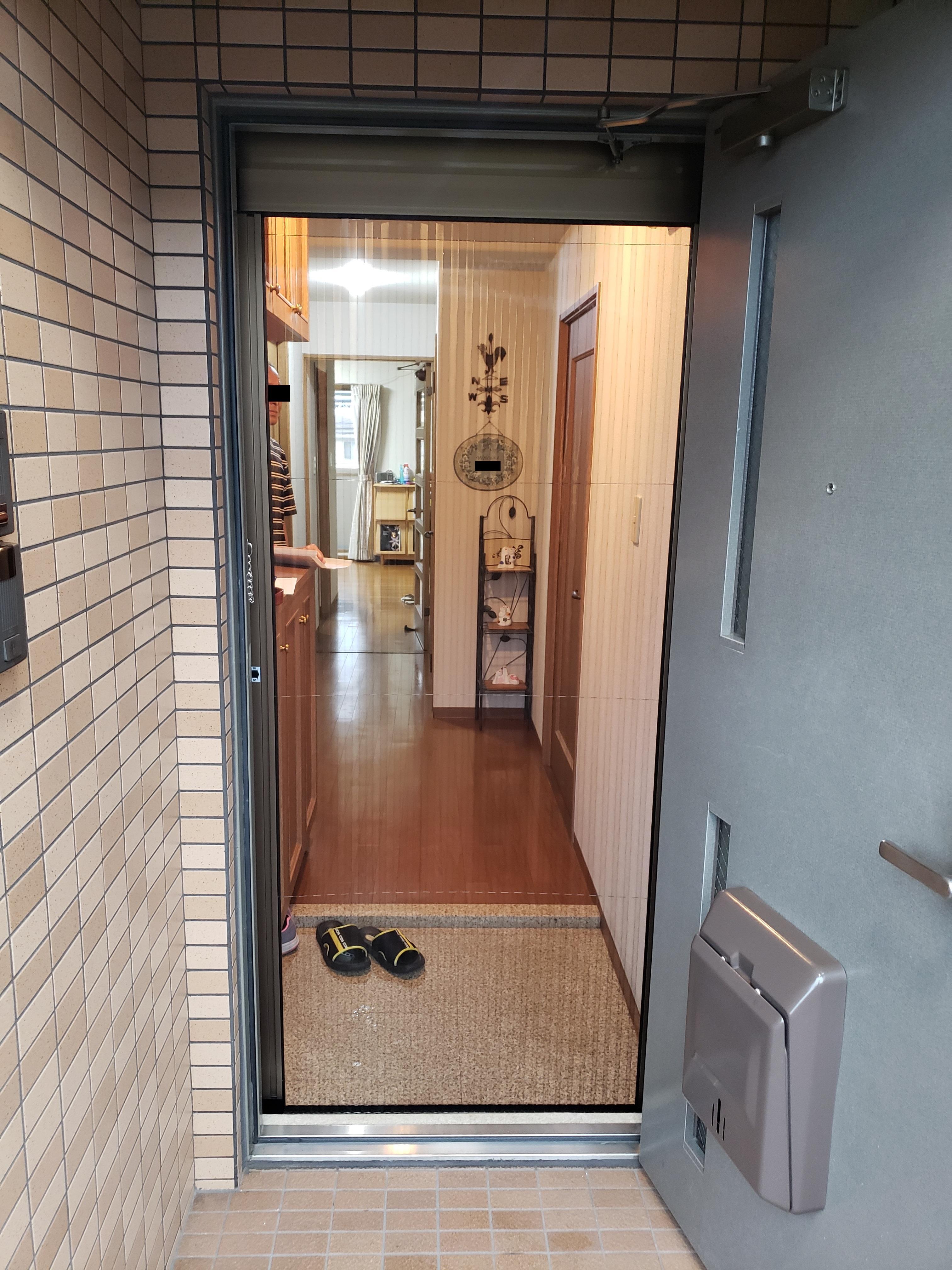 大分県大分市M町にお住まいのS様邸にて玄関網戸「しまえるんですα」の取付工事を行いました。毎年暑さが厳しくなってきています。エアコンの使用量が増え電気代も、、、。玄関網戸「しまえるんですα」では採風にぴったりの商品ですので家の中のムシムシした空気を新鮮な空気と入替、涼しいそよ風が部屋の中を駆け抜けてとても気持ちよくお過ごしできると思います。また、消費電力も抑えられ環境にもやさしい商品となっています。