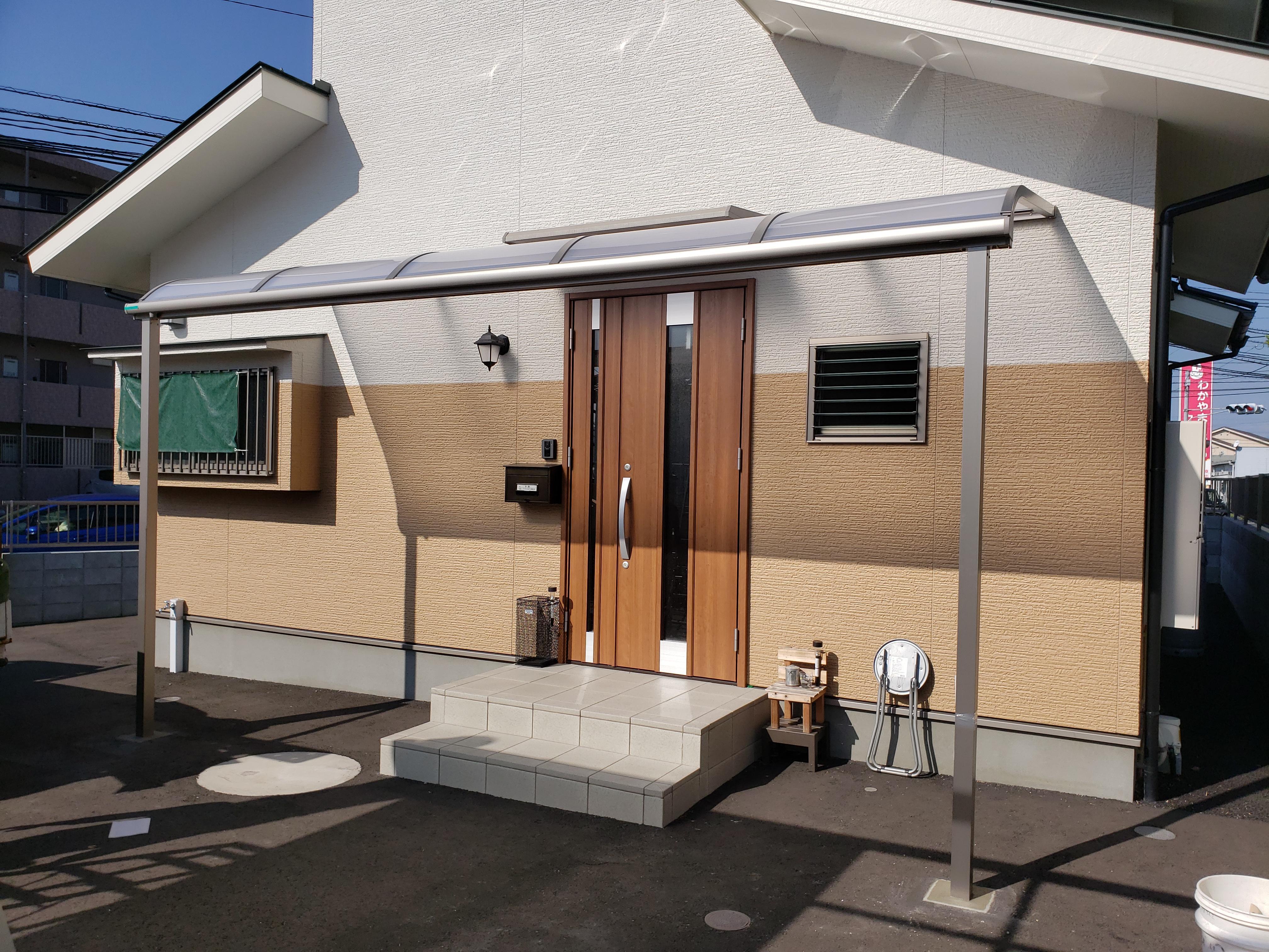 まず、テラス設置は玄関庇だけでは雨避けが厳しくテラスの設置となりました。テラスはLIXIL商品「スピーネR」を仕様。