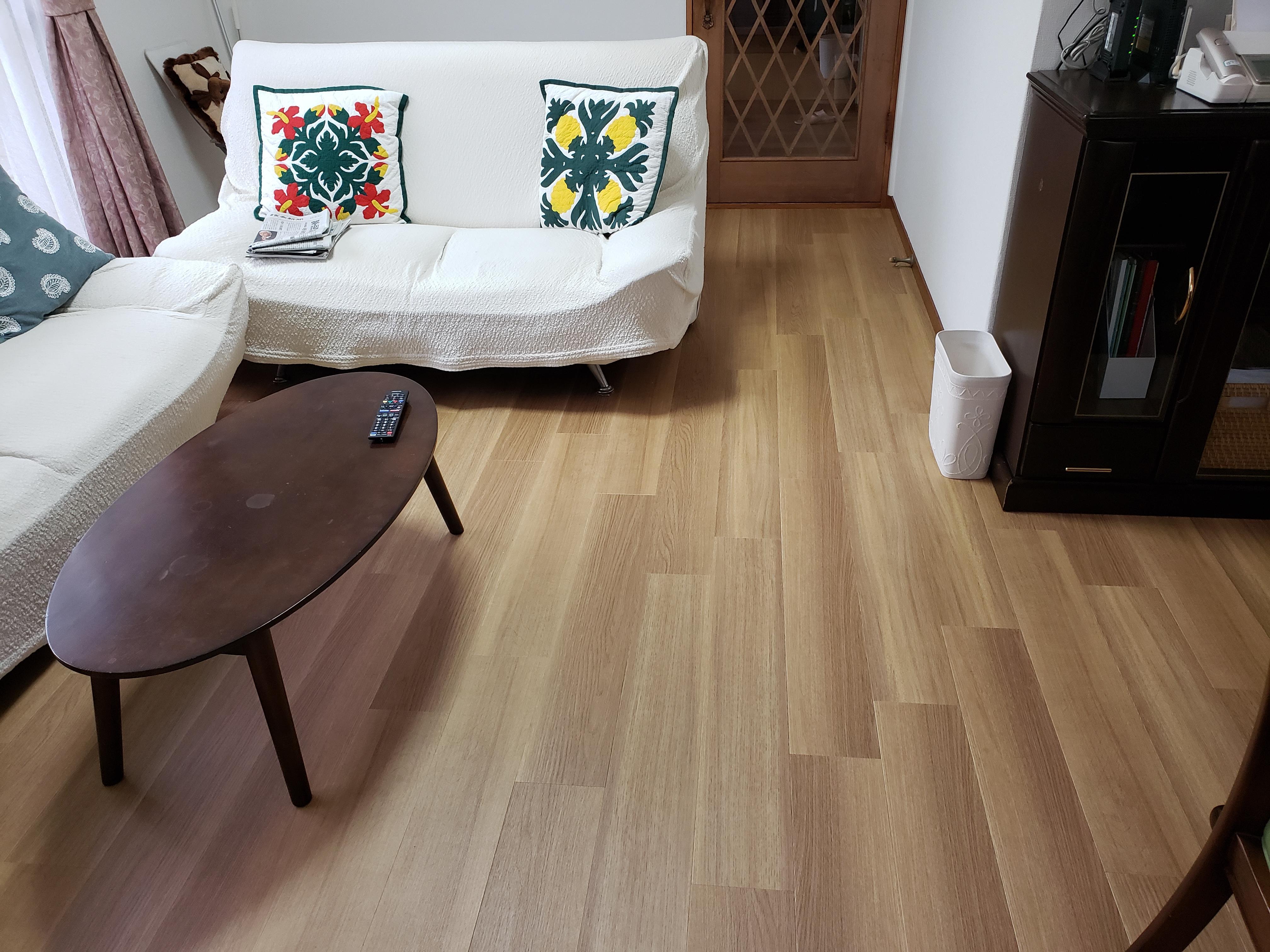 大分市在住I様邸にてリビングの床張りと天井、壁のクロス張り替えを行いました。