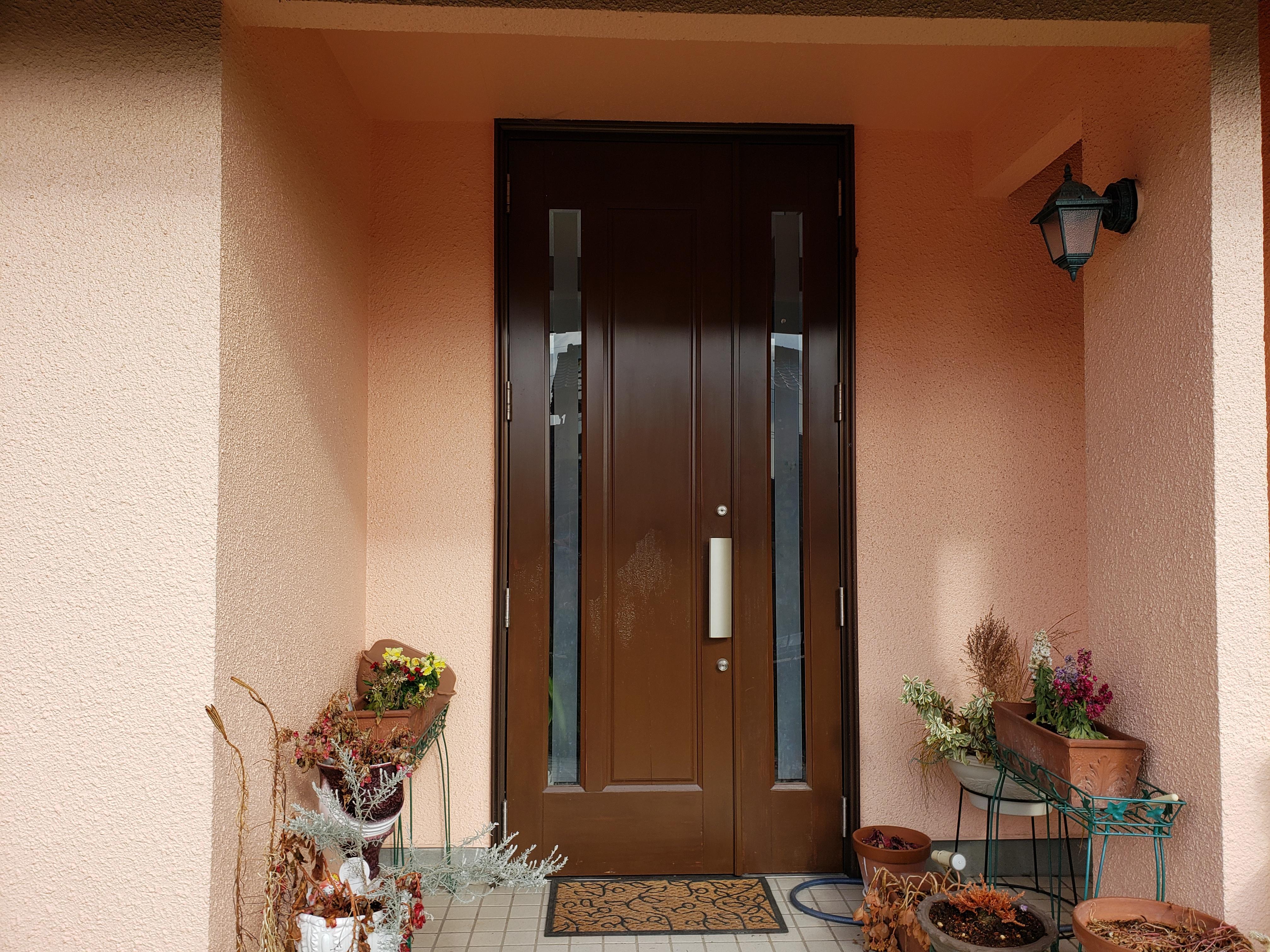 玄関ドアでは既存の玄関ドアは木製で反りがあり、すきま風が入り非常に寒い状態でした。
