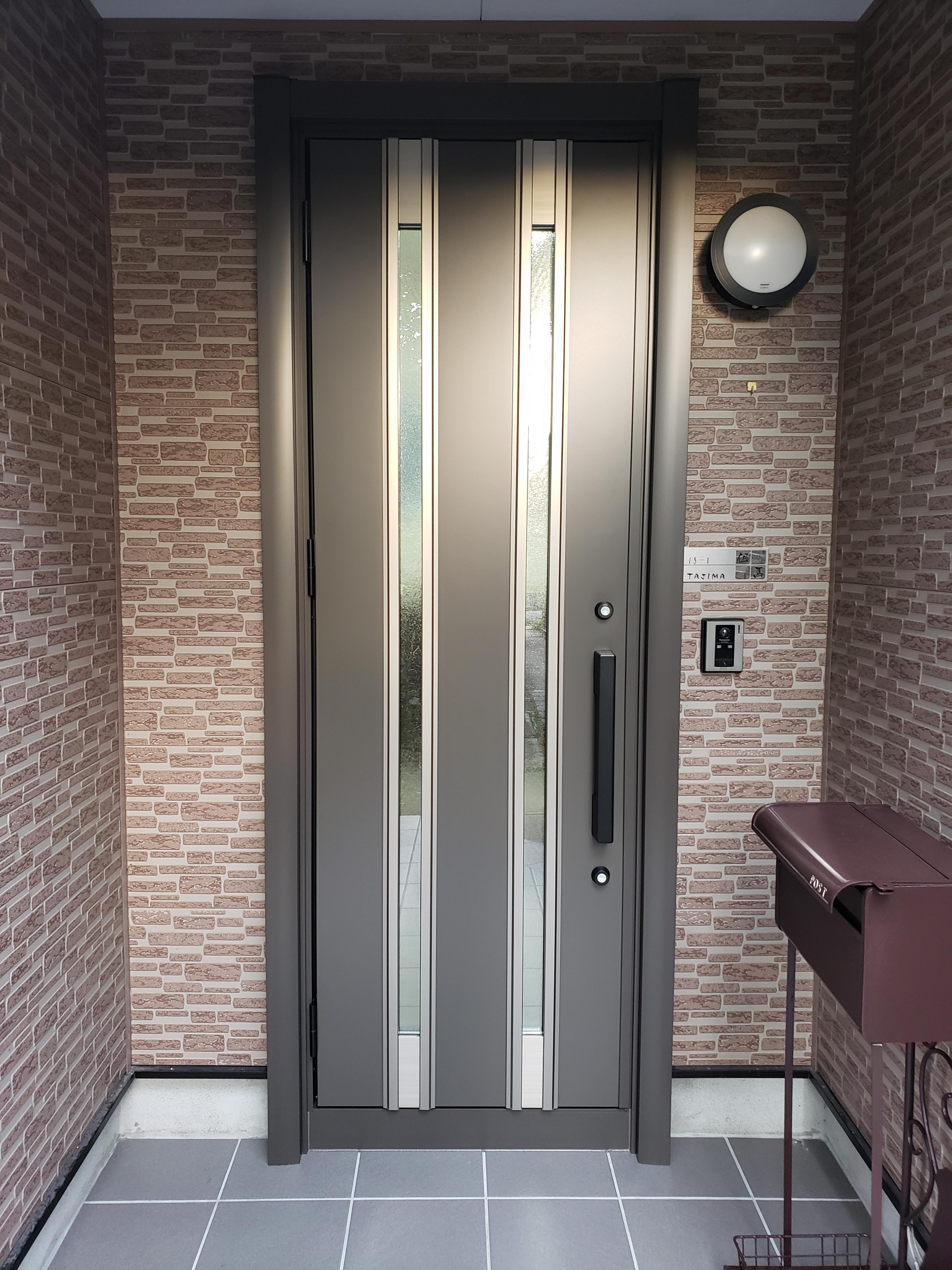 玄関ドア3リシェント断熱仕様M24型片開きの交換工事を行いました。 玄関ドアリシェントは既存のドア枠に新しいドア枠を取付施工するカバー工法のため施工期間もたった1日で完了します。 今回の商品は断熱仕様ですので、断熱効果もあります。 お客様も仕上がりにはとても満足して頂き、奥様は翌日に確認され御礼の連絡までいただけました。