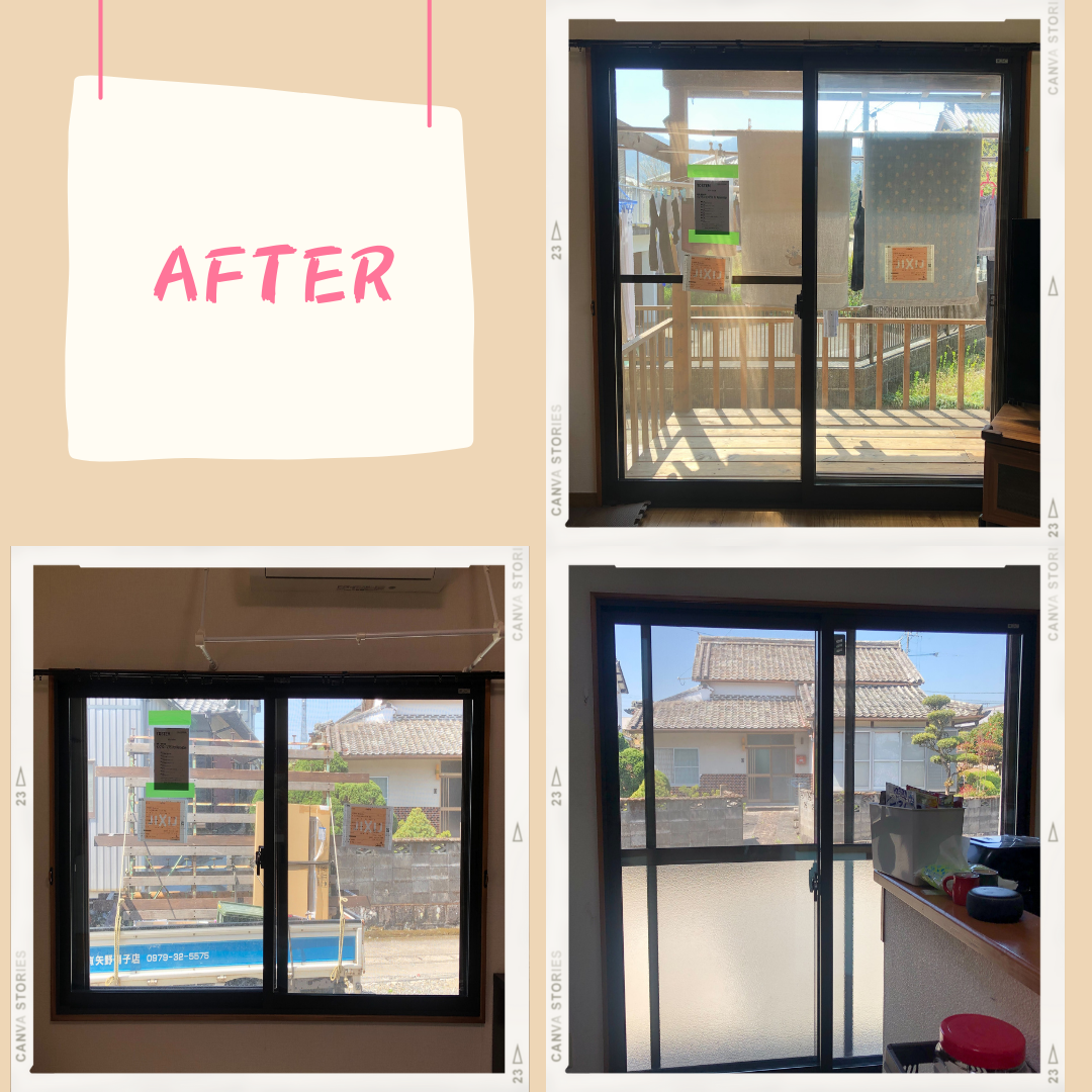 大分県 臼杵市N様邸 2022年4月8日 イベントにご来場いただき、「インプラス」設置に関するご相談をいただきました。 今回は、リビング2か所、キッチン1か所にLIXILの内窓「インプラス」を設置しました。