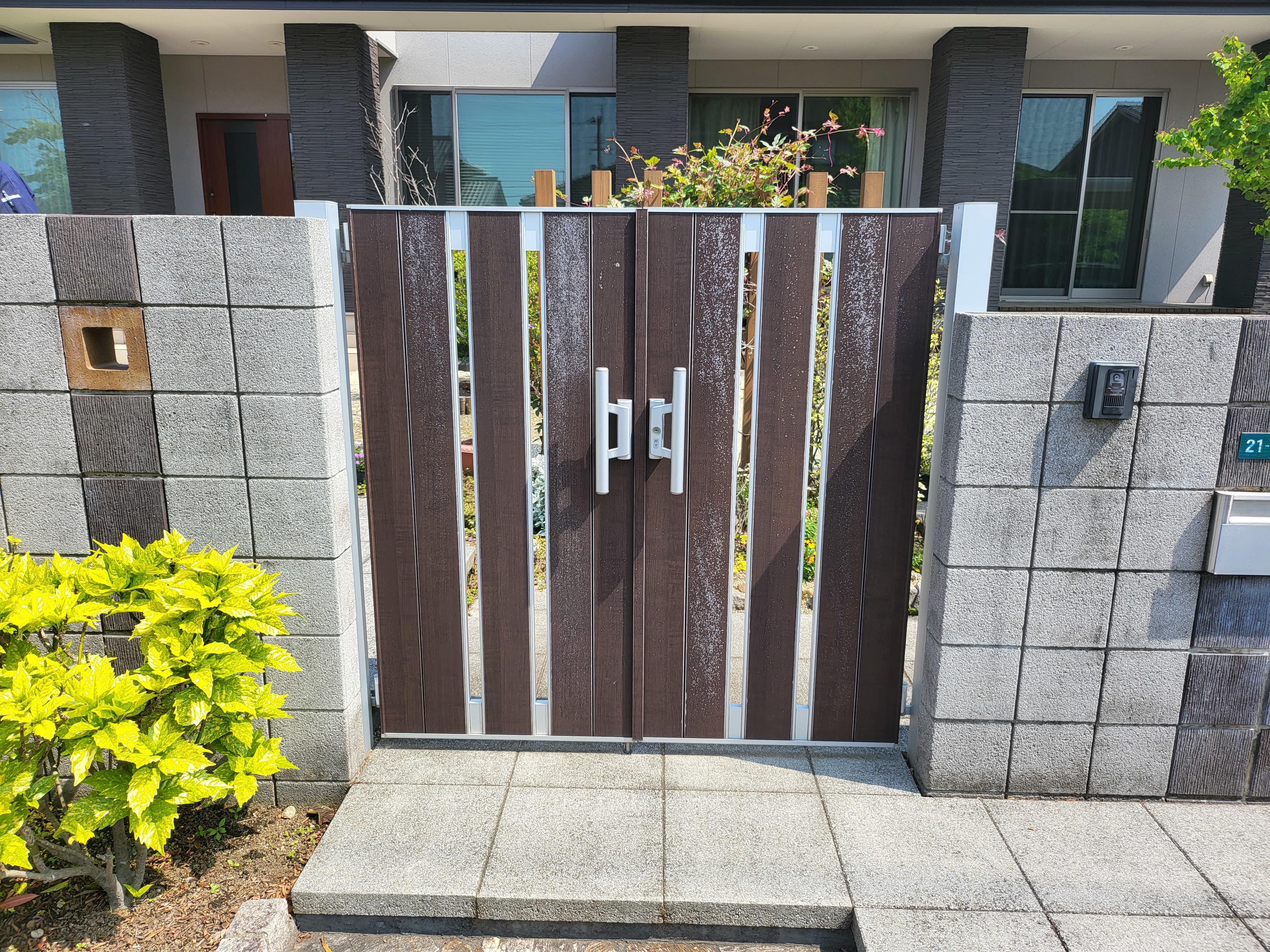 今回の施工事例はLIXIL「門扉AA TS1型」を設置しました。 以前の門扉に比べカラーをシックなものへと変更したので落ち着いた印象へと変わりました。 ソフトモーション付きなので、開けたままでもゆっくりと閉まってくれます。 お客様にも喜んで頂けました。