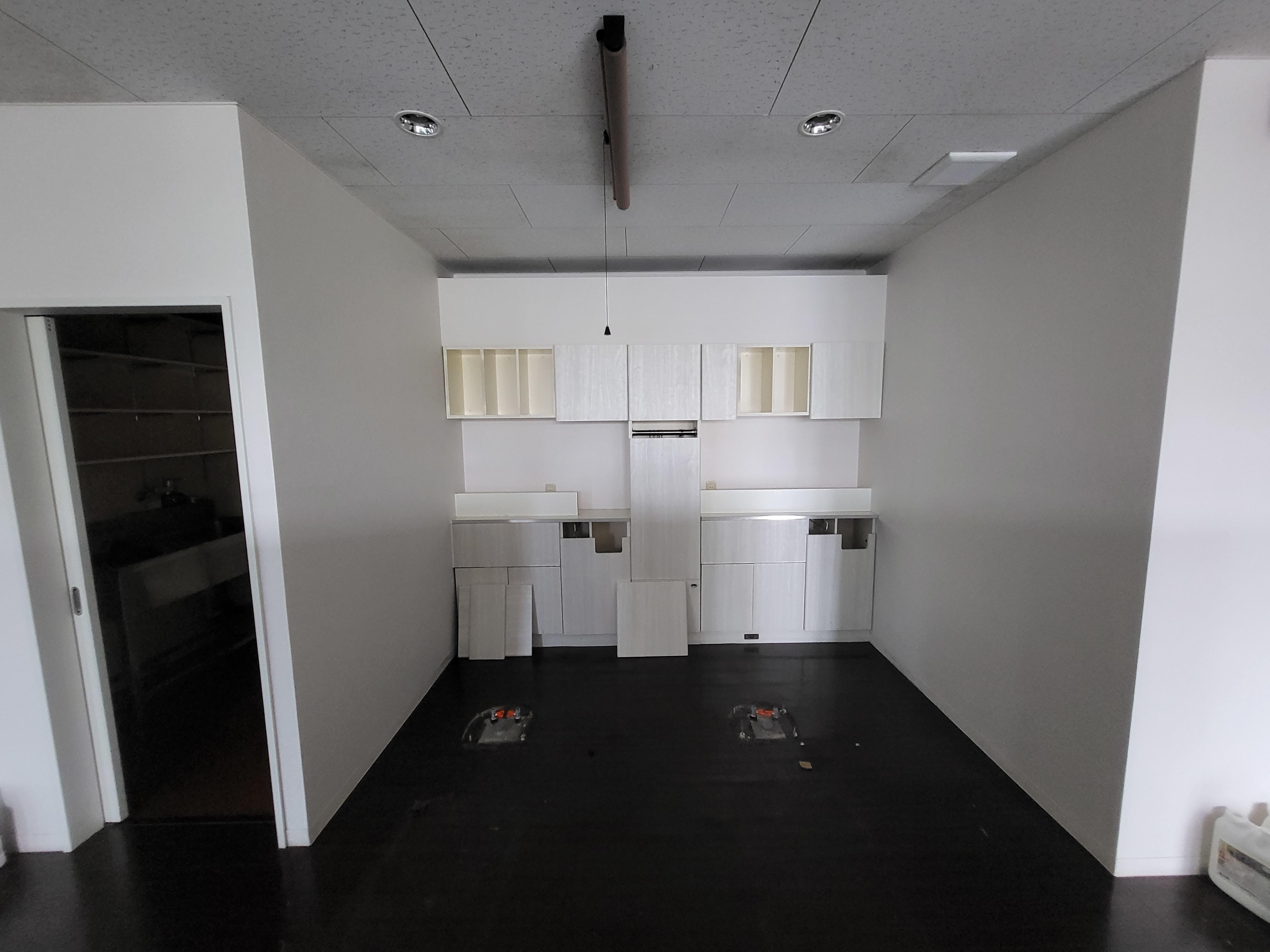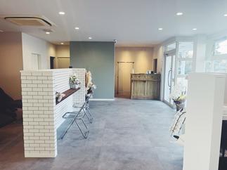 美容室だった物件をフルリノベーションしました。既存の配管などを崩さずカットスペースを拡大し 広さと明るさを感じる空間に生まれ変わりました。 インテリアに統一感を持たせて落ち着きのある雰囲気に仕上げています。