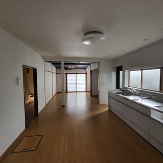 水まわりを一新し、和室を洋室へひろびろとしたLDKに! ご両親が大切にされてきた和室の船底天井を活かし、落ち着いた空間になりました。