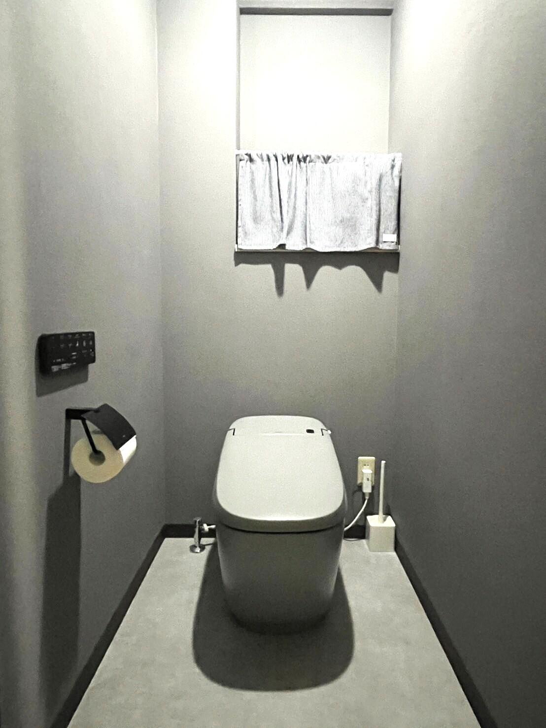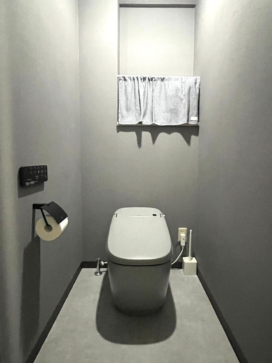 水まわりは、奥様のご希望でグレーを基調としたホテルのようなインテリアに。トイレは人気のサティスGノーブルグレーが高級感を演出しています。