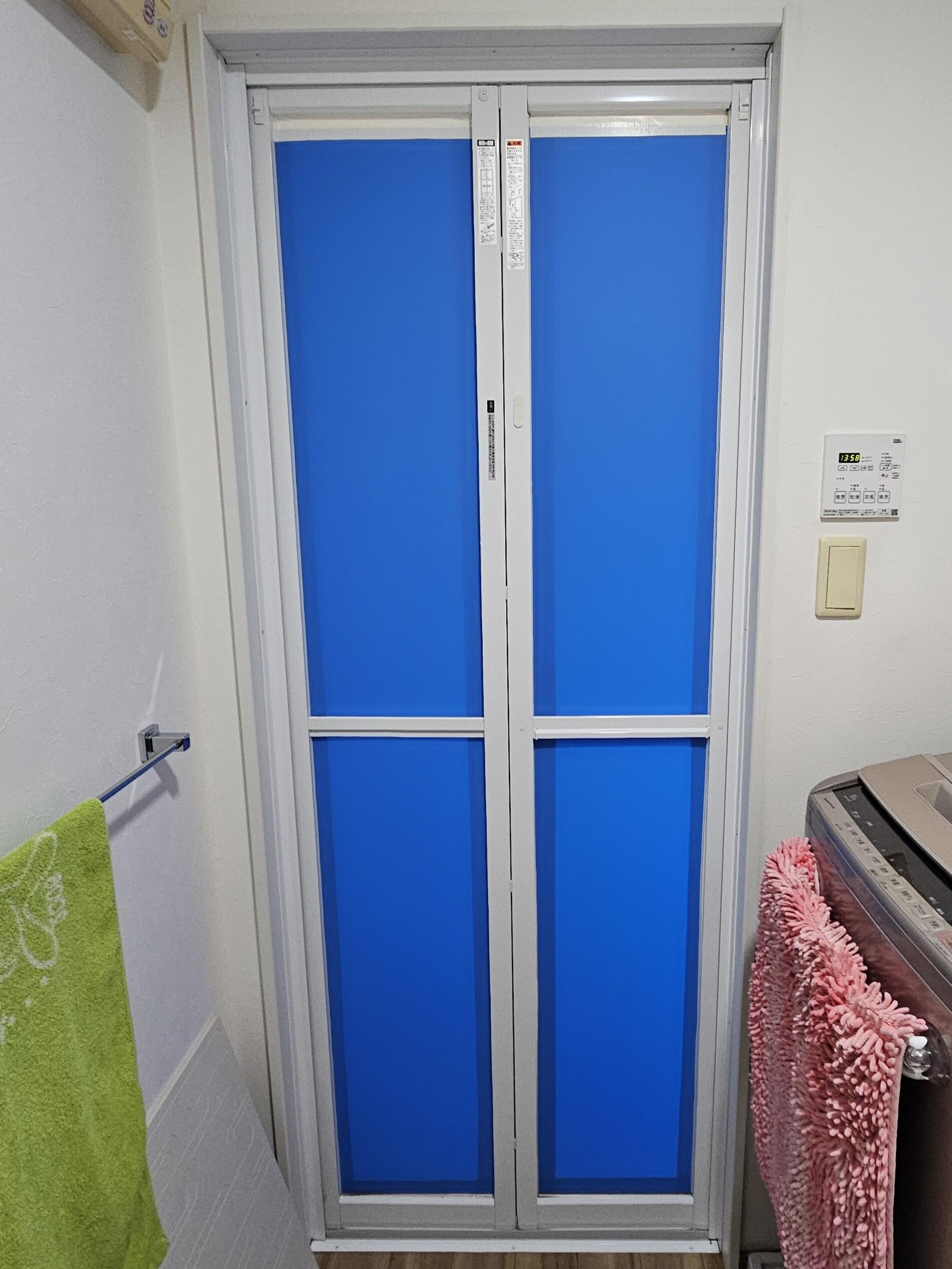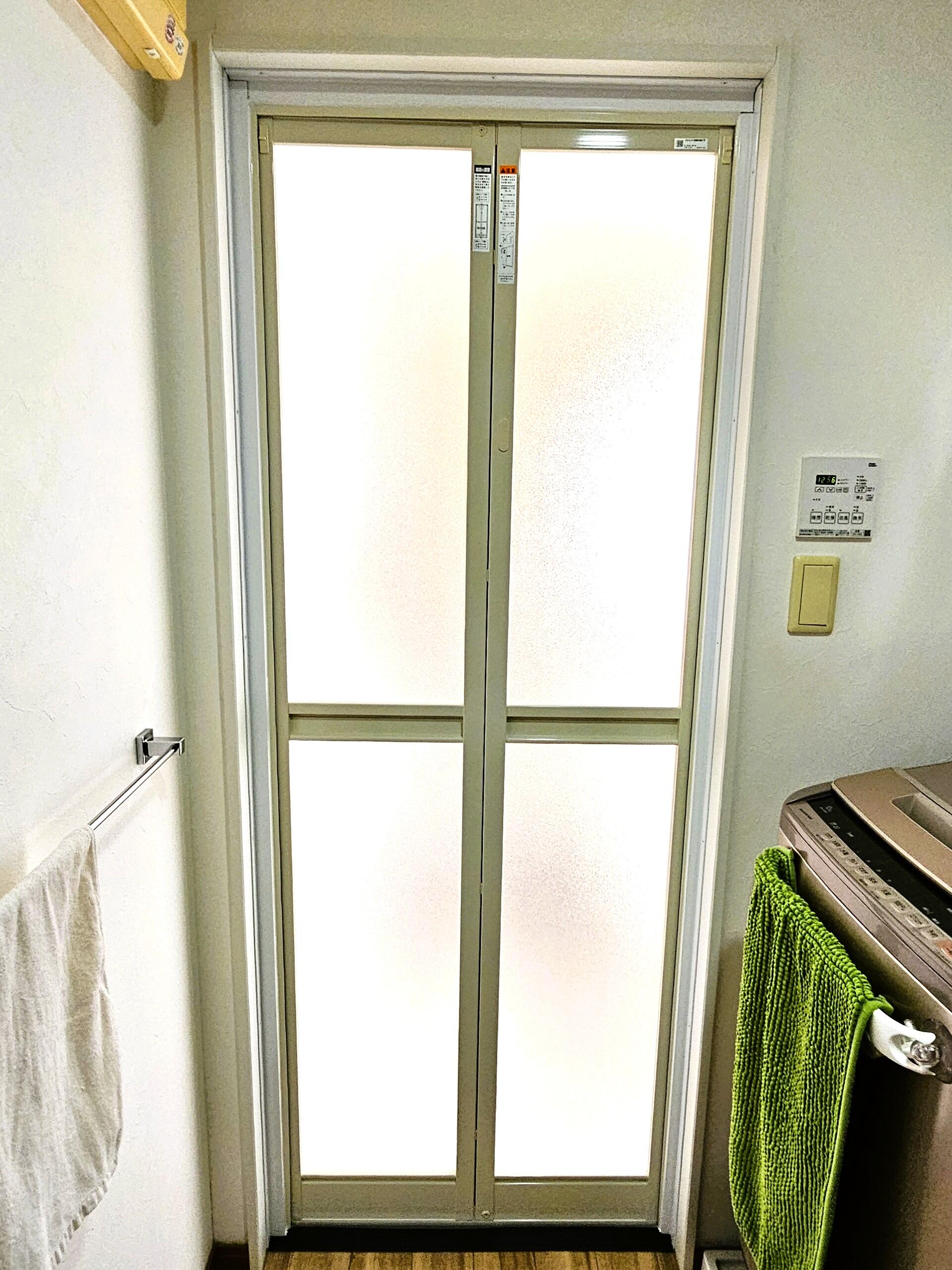 今回、浴室折戸の取替工事を行いました。 扉にぶつかりパネルが破損してしまいプラスチックボードを貼って使用されていました。 新しい扉に取替えを行いキレイになりました。