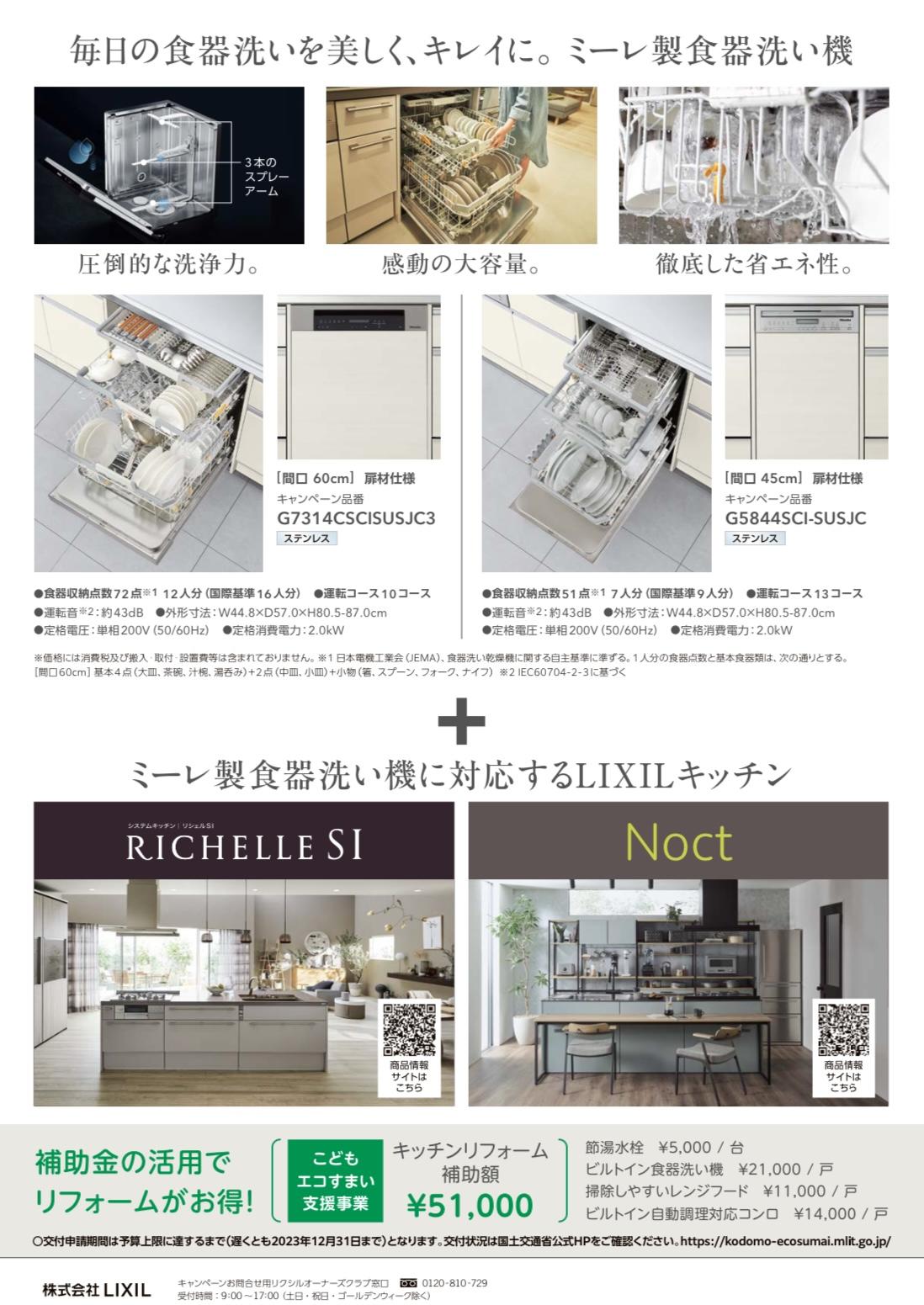 LIXIL商品のキッチン【リシェルsi】または【ノクト】とミーレ製食器洗い機をセットでご成約いただいた方は、