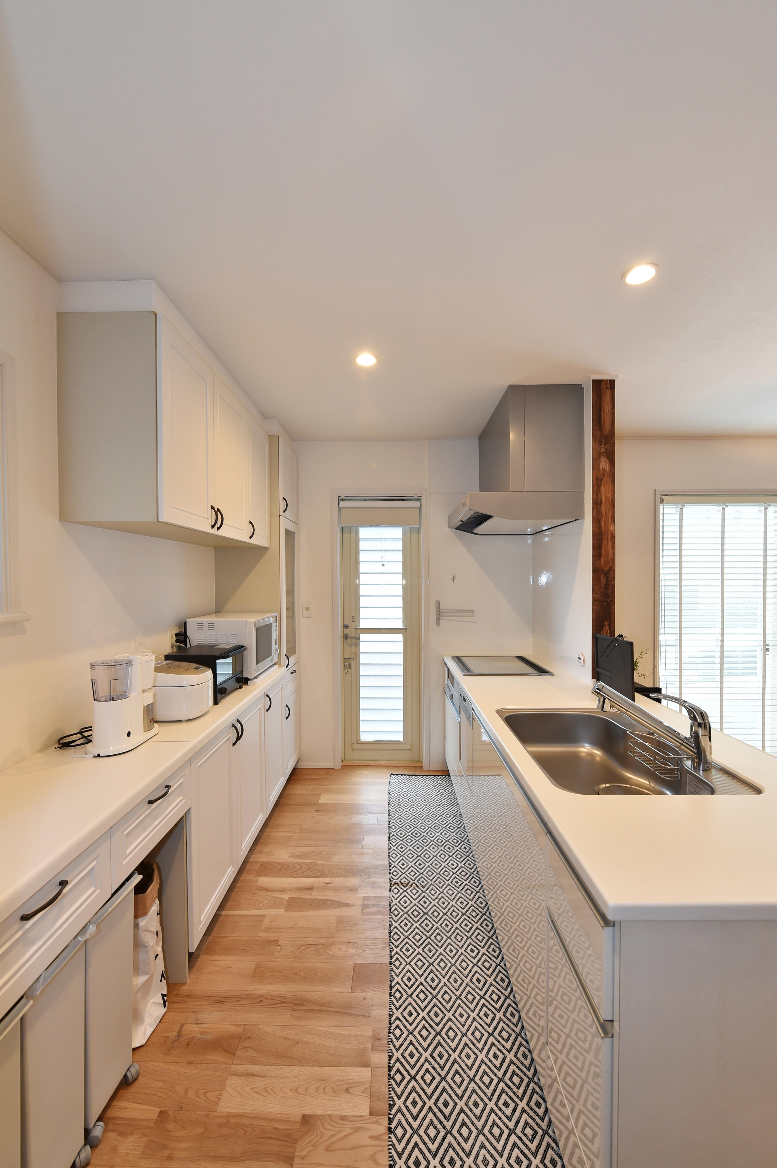 玄関収納の位置を変えただけで清潔感のある明るい広々とした玄関になり大変嬉しいです! リビングとのつながりもイメージにぴったりでした!閉鎖的なキッチンはオープンになり、清潔感のあるホワイトで統一しました! 毎日快適に暮らしています!