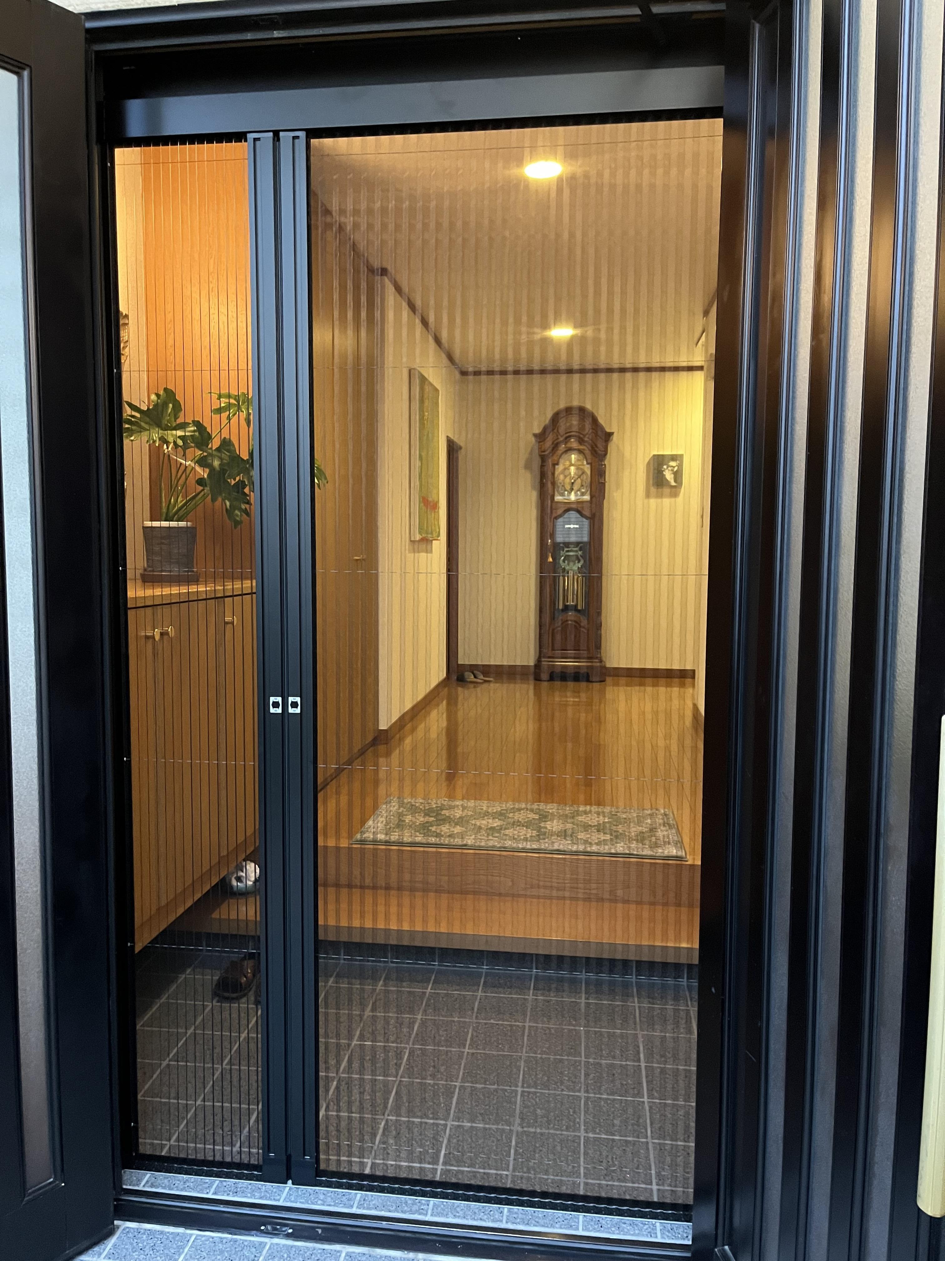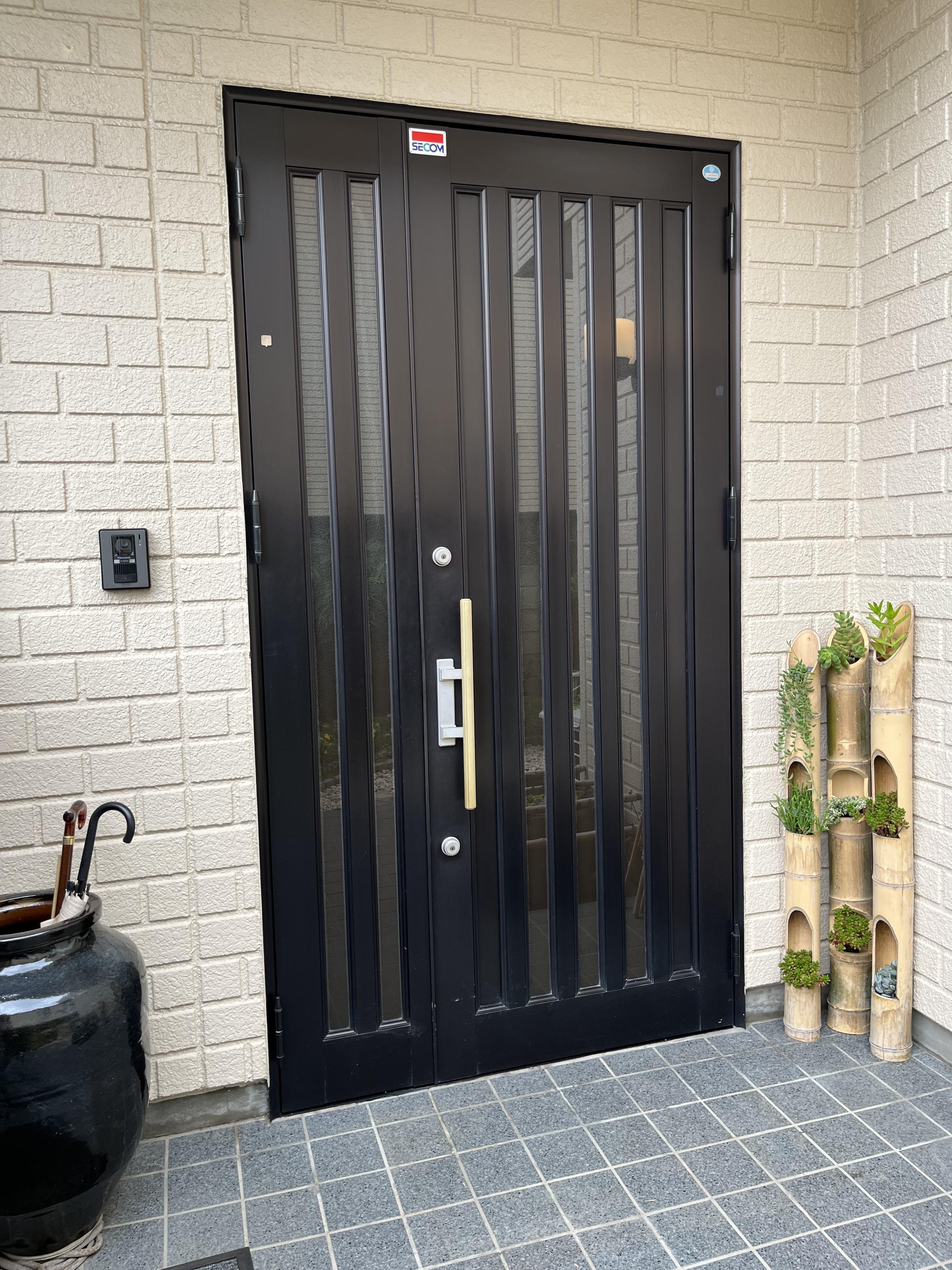 広々とした玄関ドアにぴったりのしまえるんですaの取付が完成しました!お色もブラック色で高級感ある玄関ドアとなりました。