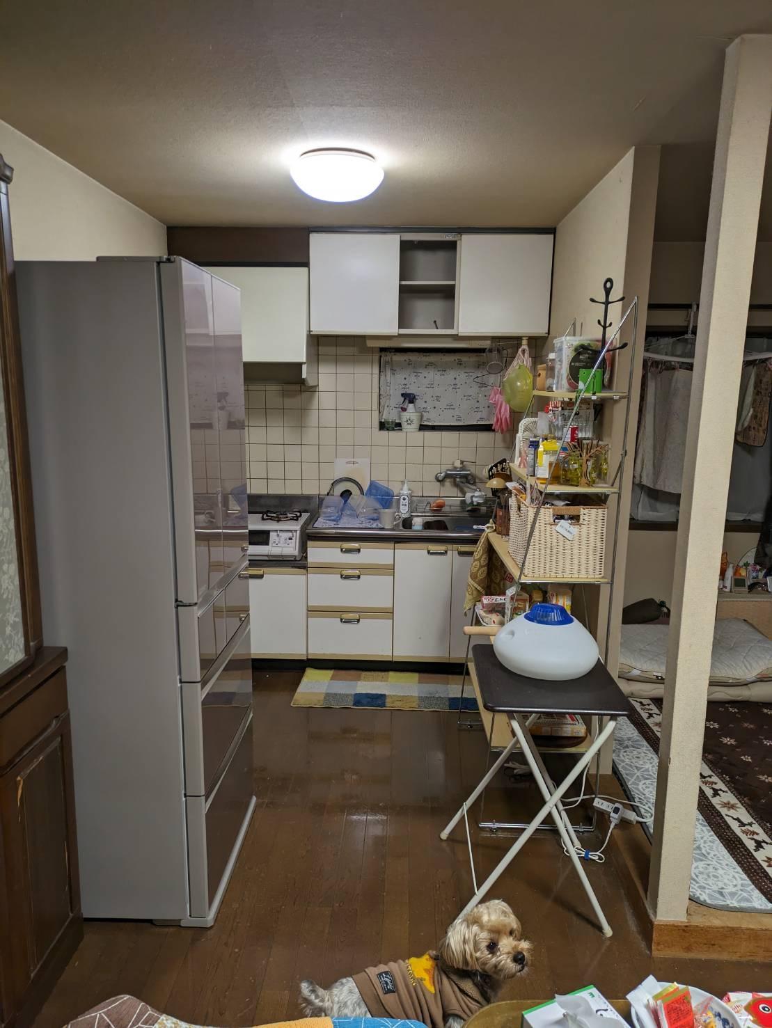 孤立していたキッチをオープンに見せて、大きな収納をご提案致しました。
