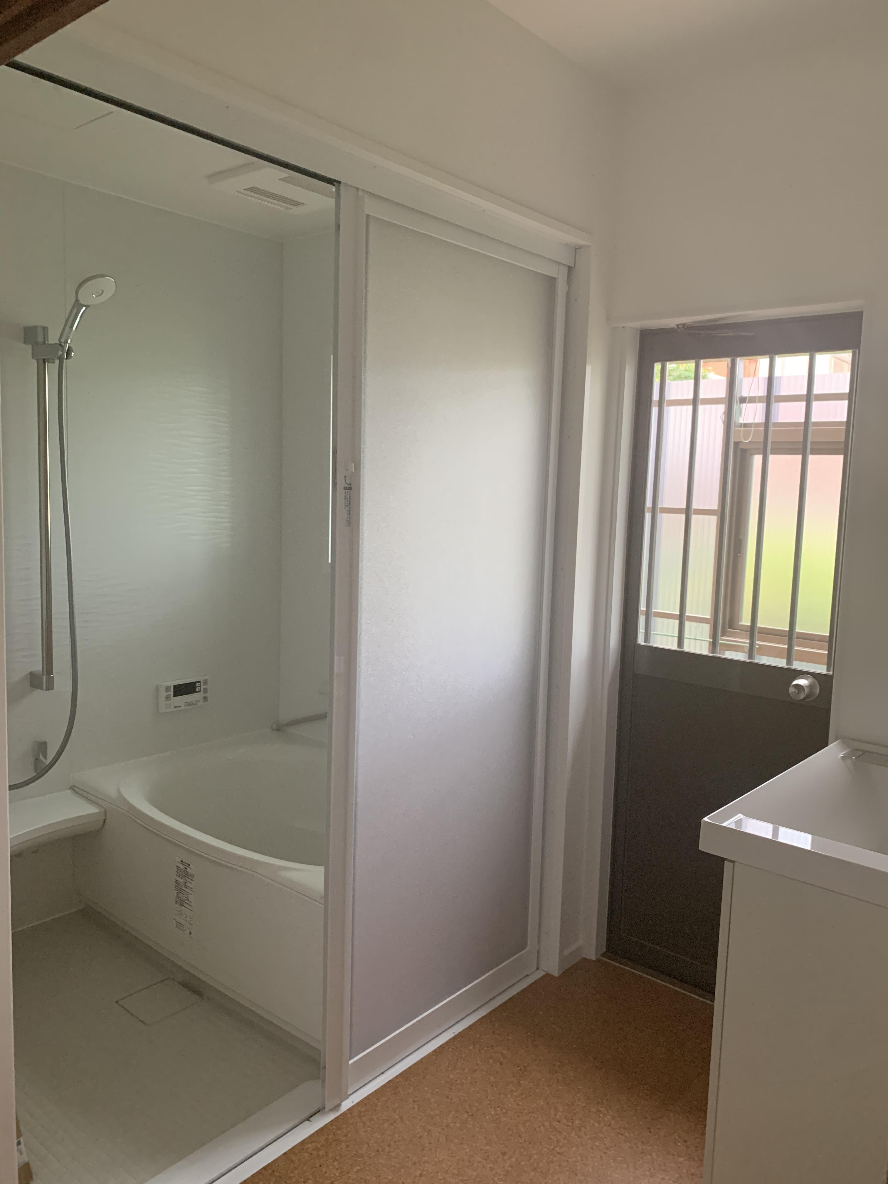 キッチンを対面式に。浴室のタイル張りのお風呂から暖かなシステムバスへ変更。2階にトイレも新設し1階で使っていた洗面化粧台も移設しました。玄関ドアも防犯性とデザイン性に優れたリフォームドアへ変更いたしました。床は断熱材を入れてコルクをはり、窓には内窓を設置。冬も暖かく、夏もエアコンの電力をおさえれます。