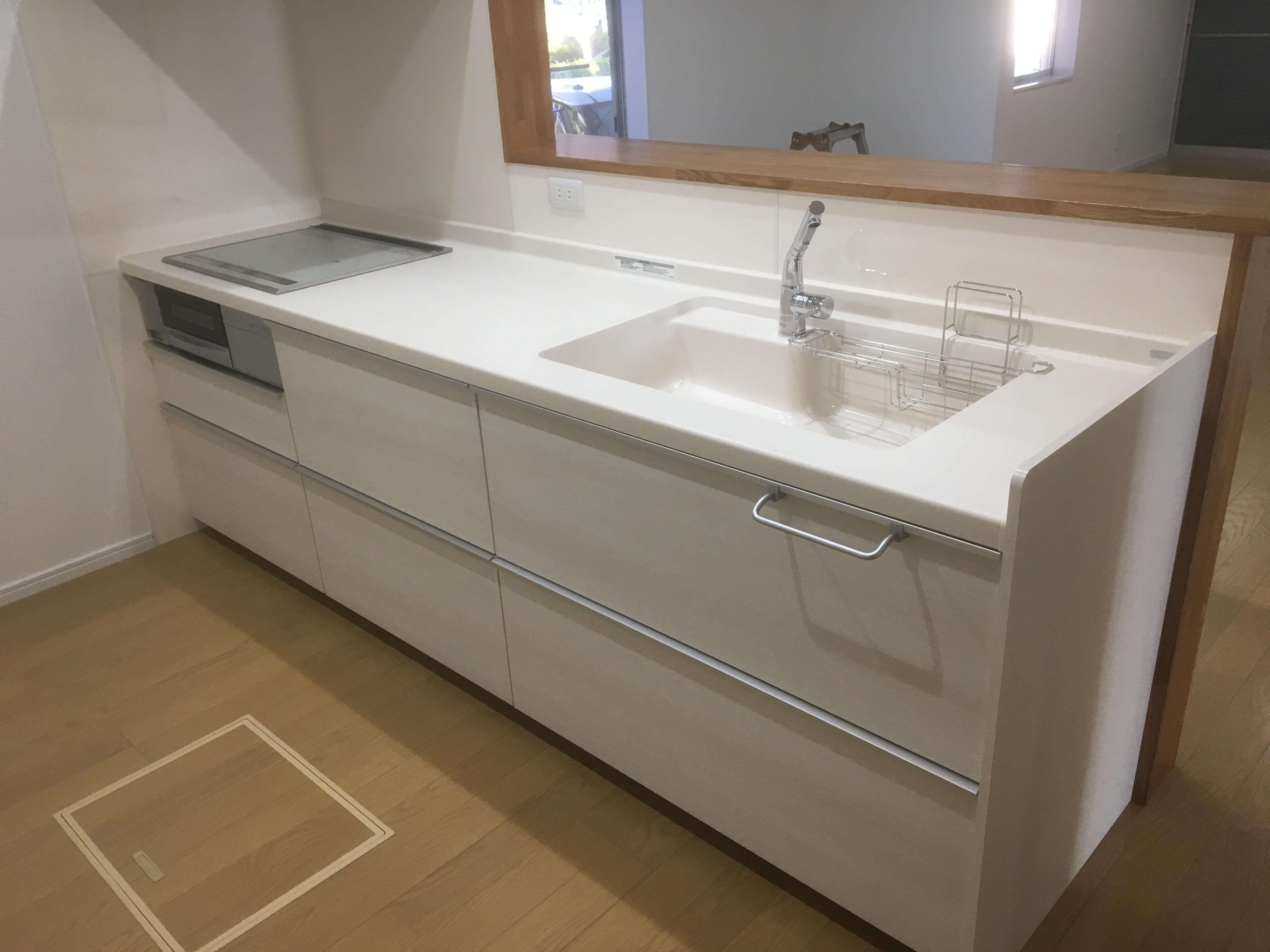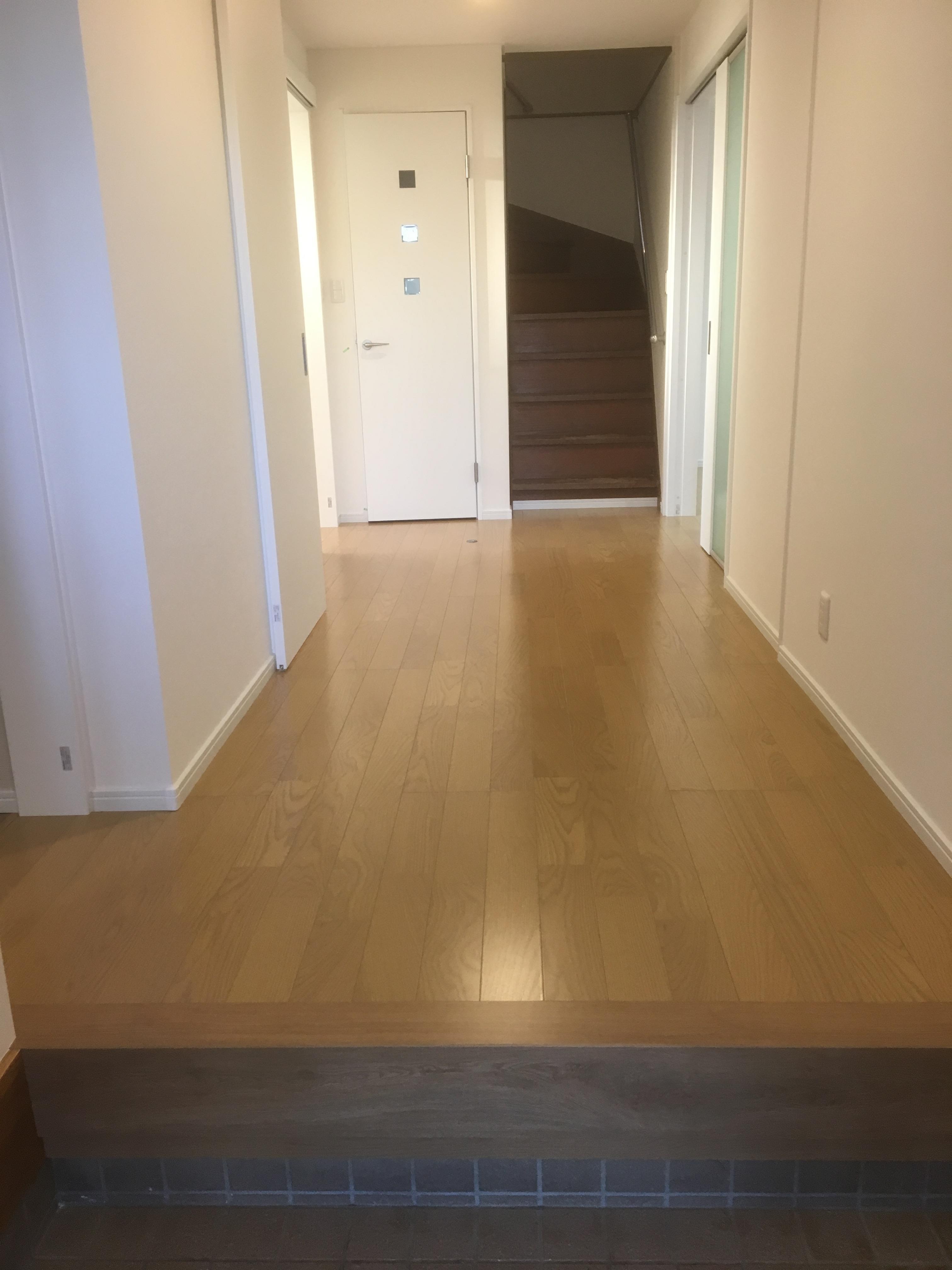 対面キッチンのある広いLDKに間取り変更して、寝室、WICと洗面所ユニットバスを綺麗にして、2階に上がらなくてもいい生活動線にしました。