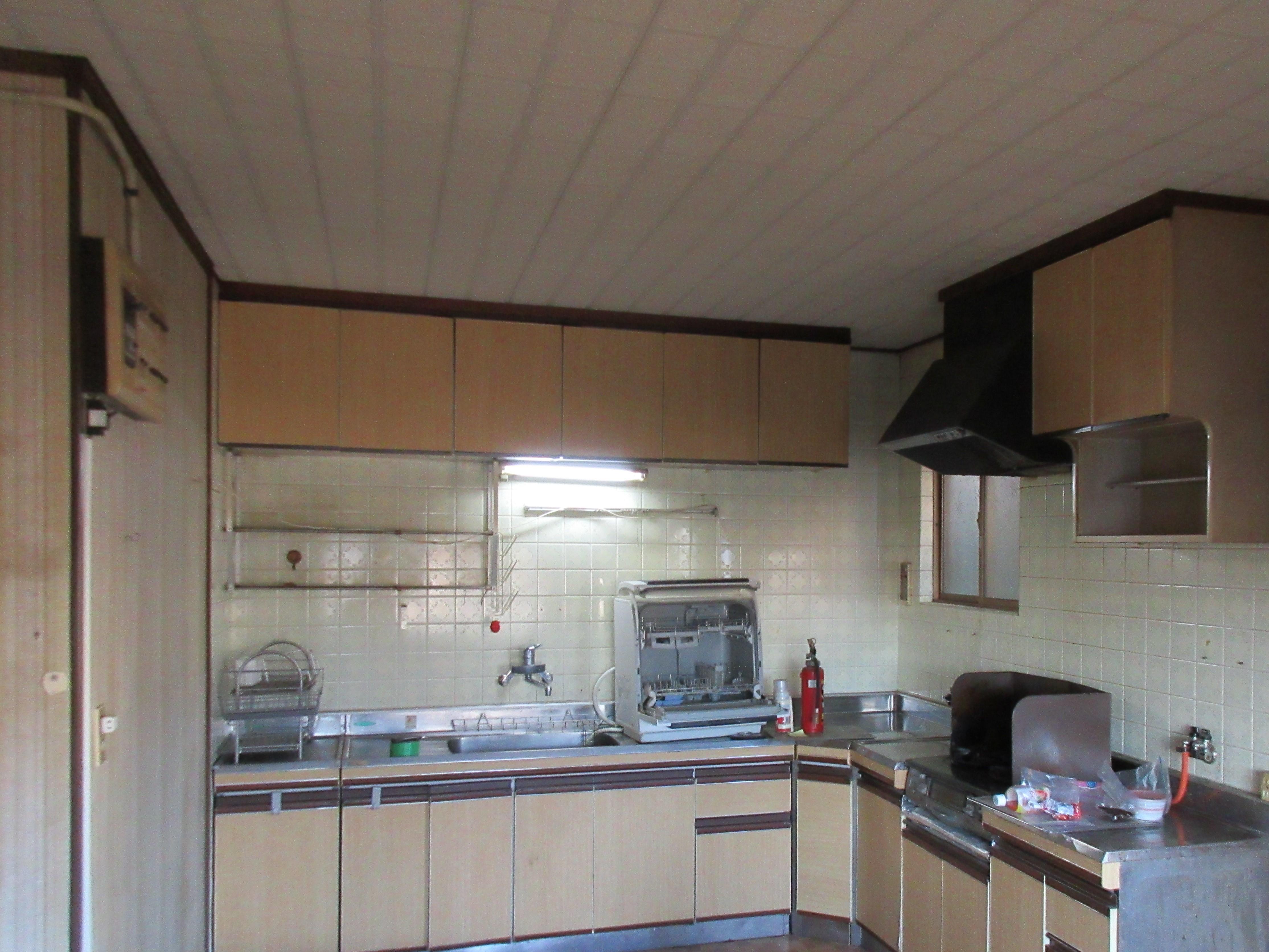 築50年を超えるお家でキッチンとリビングが別になっていた空間を一体型の大きな空間に変えました。