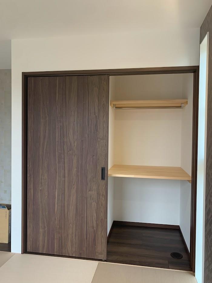 お布団やたくさんの物を収納できる使いやすい和室を提案しました。ご希望されているイメージにあう様に、畳も樹脂製にしたのでモダンな雰囲気になりました。
