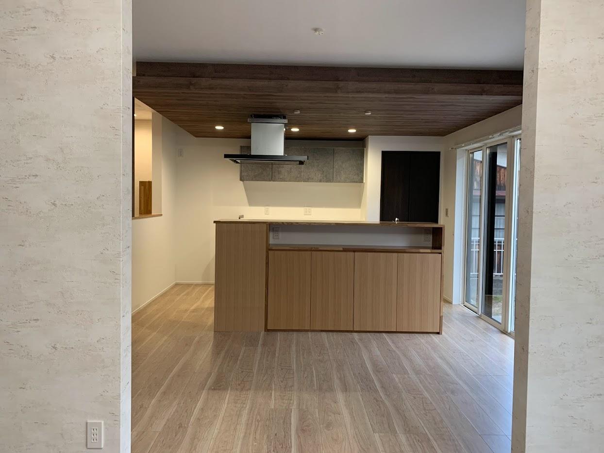 ご家族がゆっくりと団らん出来る間取りへと変更しました。アクセントクロスでお部屋の雰囲気も素敵に。ご家族の想いがいっぱい詰まったお家が完成しました。
