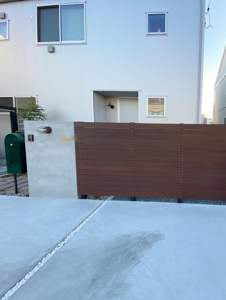 スタイリッシュさと温かい雰囲気を融合させたエクステリアが完成しました。目隠しにもなるウリン材のウッドフェンスはアクセントとしても映えますね。