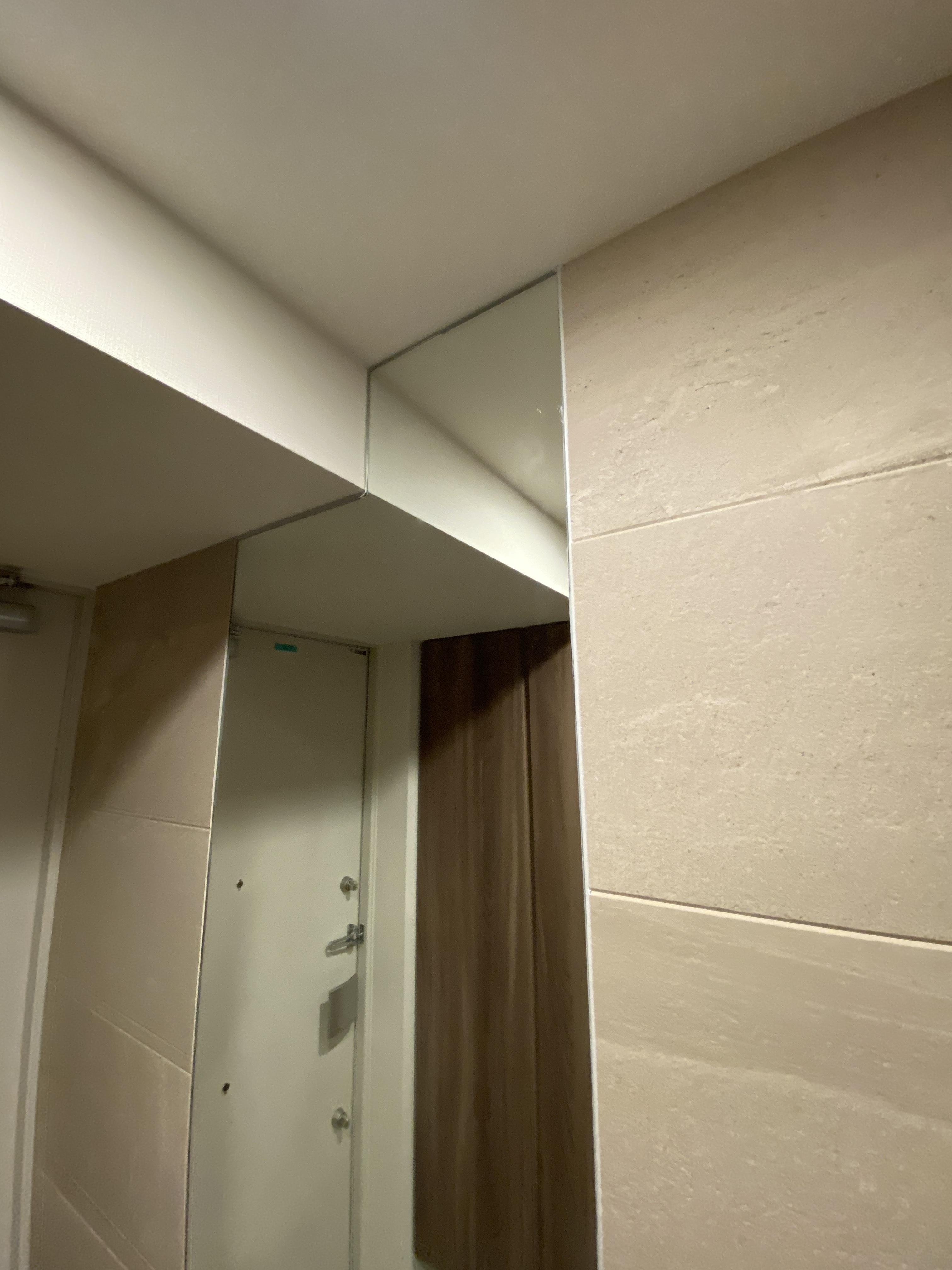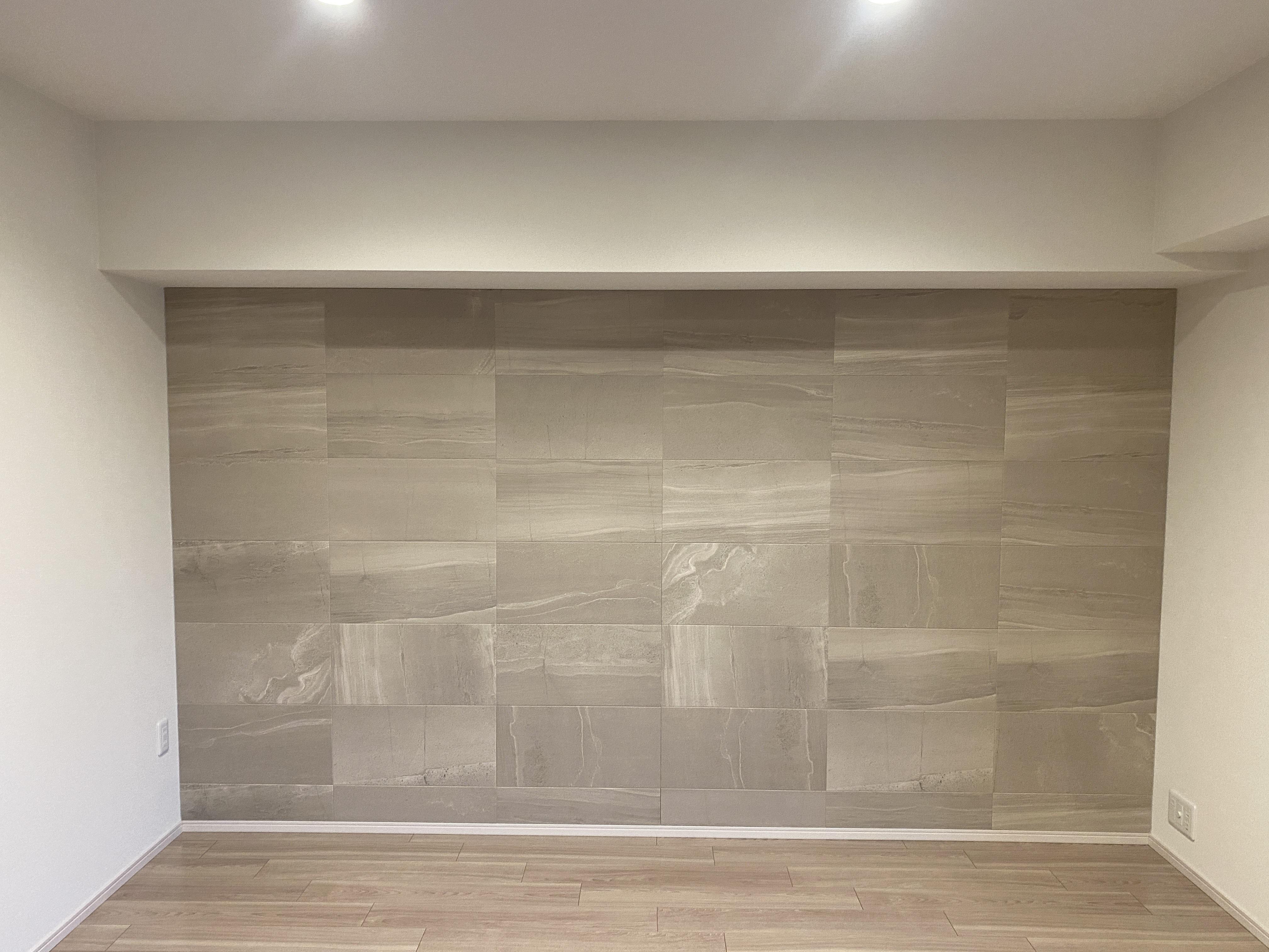新築マンションの入居前に、リビングのテレビ背面と玄関に「エコカラット」を貼り、おしゃれな雰囲気にしたい。