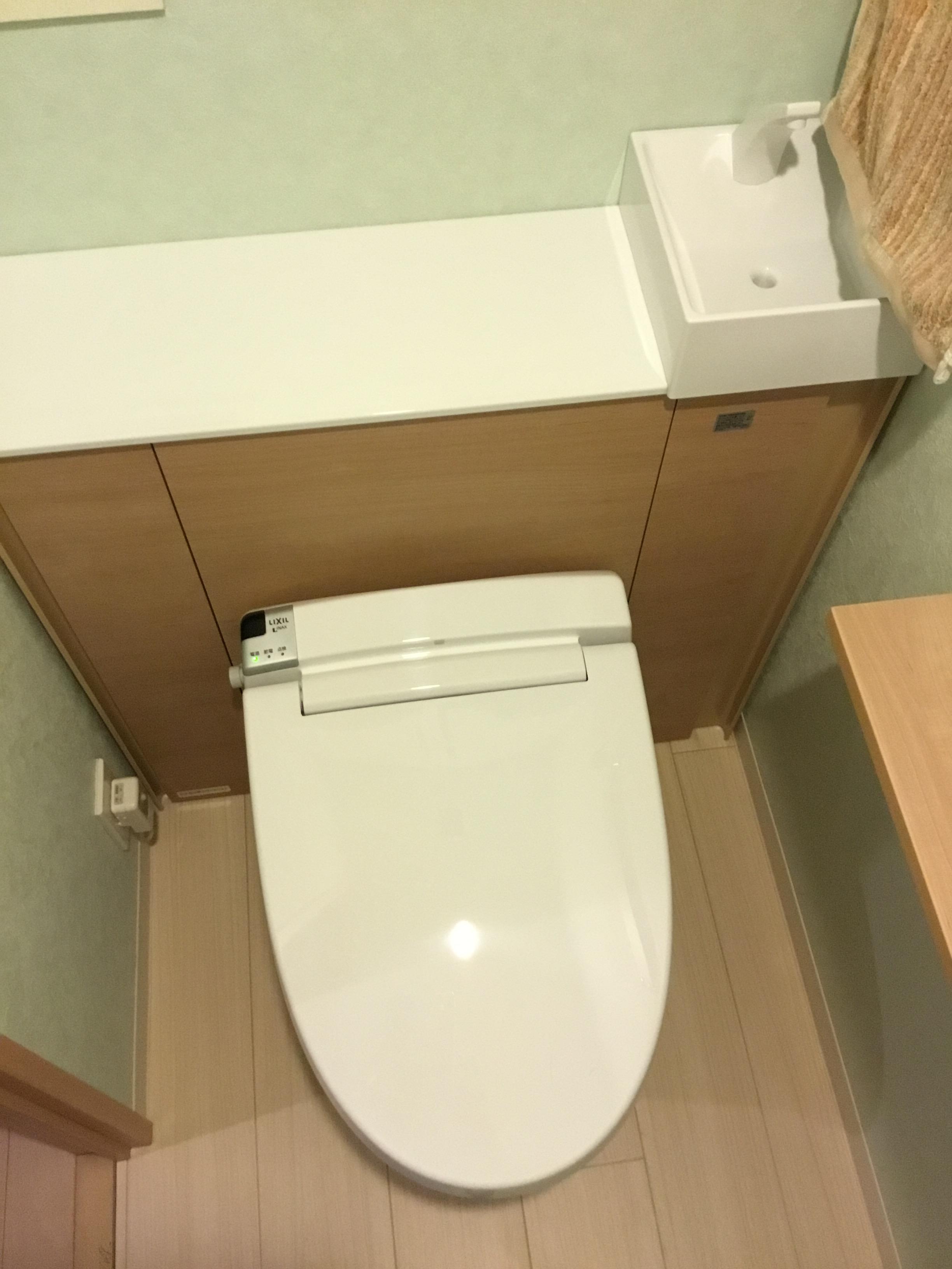 トイレ交換にあたり 1.小さなお子様が手を洗いやすい 2.手すりを設置したい 3.予算内でのリフォーム この3点がご希望でした。 お打合せを重ねご予算・ご希望にあうリフォームをご提案しました。