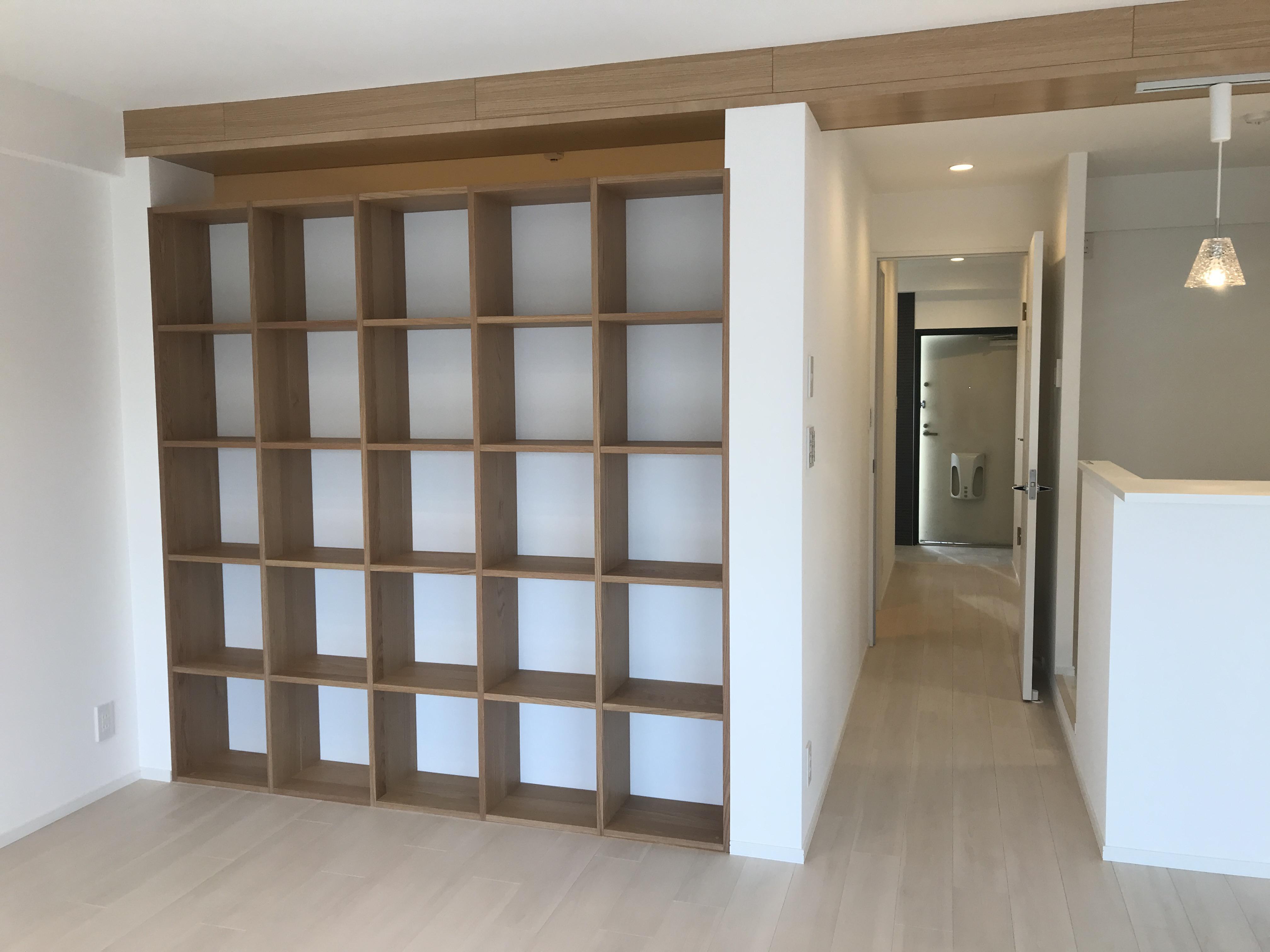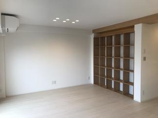 O様は好みや新たな空間での生活イメージもはっきりされていました。 お互いに相違が無い様、変更が出ることにパースを提出し、お打合せをさせていただきました。 その甲斐もあり、O様のイメージ通りの空間が完成しました。 マンション自体はとても管理が行き届いていましたが、やはり築50年・・・ 外壁に面している壁は結露からカビが発生していました。 デザイン性のみならず、健康的に住んで頂きたい!ご予算をオーバーしてしまいましたが、 結露防止工事をご提案し、工事させていただきました。 また、予算を削れる所は、削る! 今回リビングに棚をご希望いただいておりました。 無印の商品を使用し、背面に壁を取り付ける事で、コストダウンに。 諦めない!築50年マンションが生まれ変わりました。