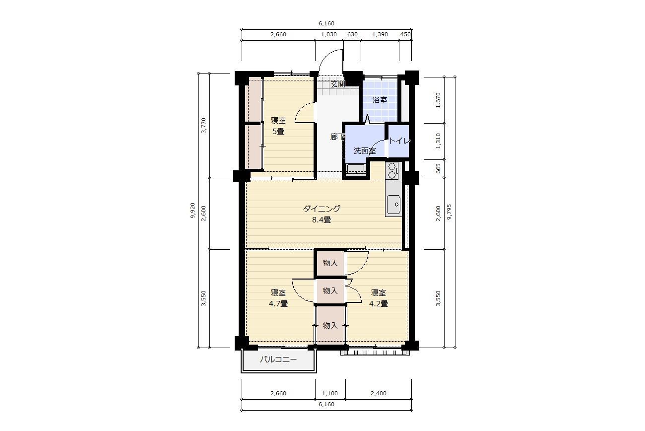 築50年の中古マンションご購入され、リノベーションのご相談をいただきました。何度かヒアリングをさせて頂き、O様の好みや生活スタイルを考慮し、プランニング。仕切りだらけの空間を開放的にし、プライベート空間はコンパクトに。収納もたっぷり設けています。