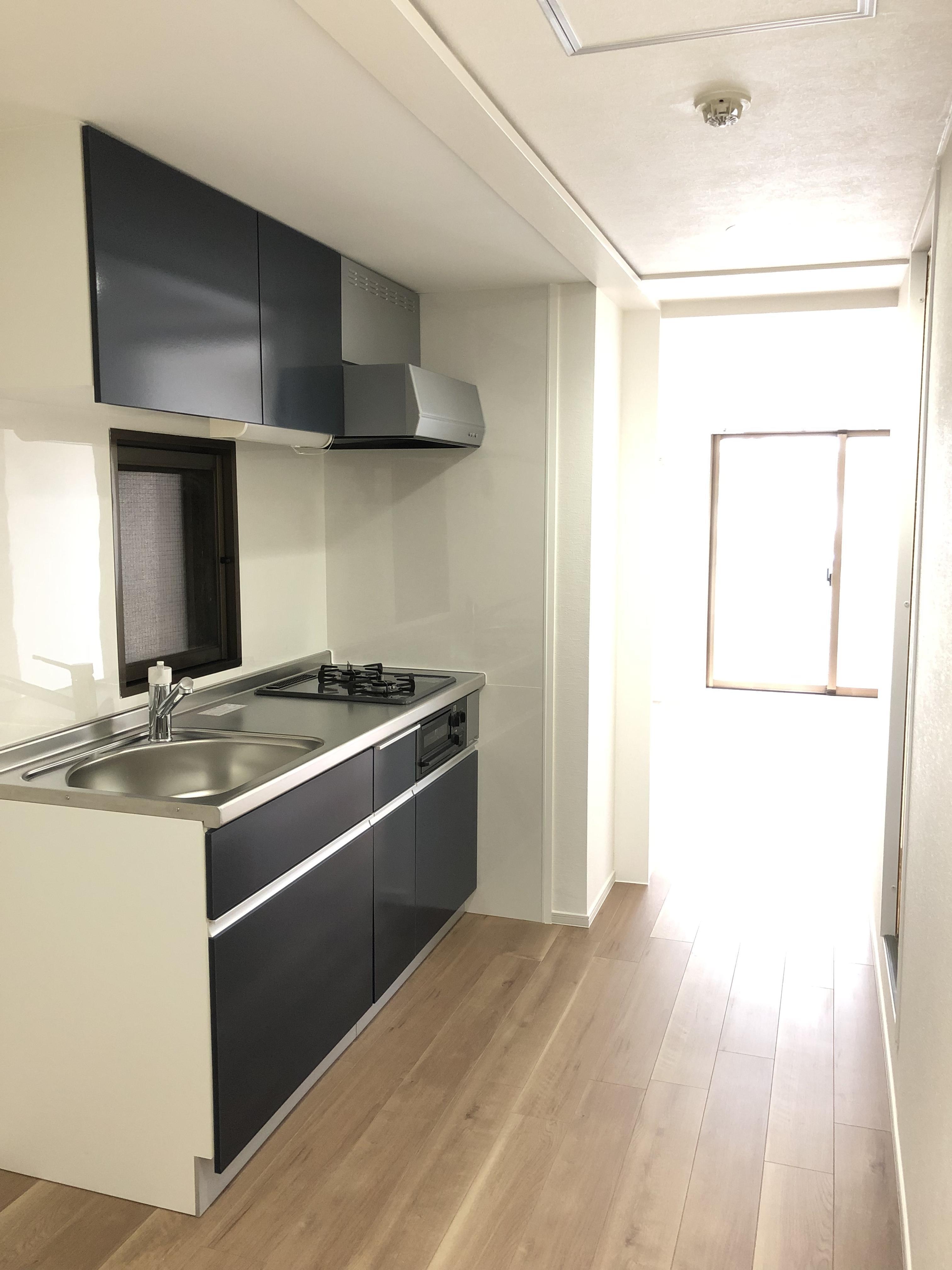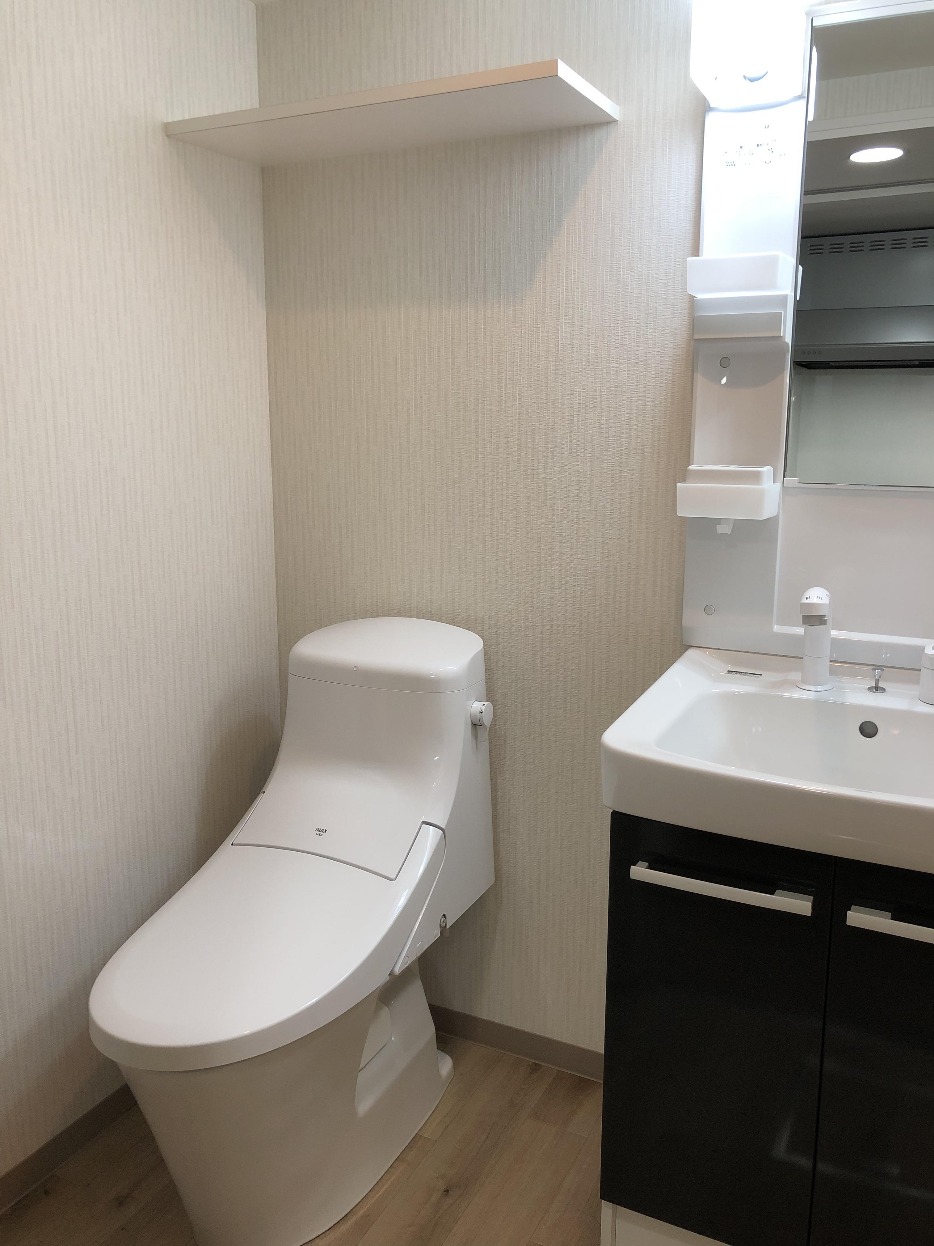 オーナー様より、賃貸リフォームのご要望をいただきプランニング。個性を出しすぎず、、、それでいて男女問わない好まれる空間をご提案しました。 最大のポイントは、3点ユニットバス(トイレ・浴室・手洗い)をユニットバスとトイレ・洗面脱衣室に分けました。床材は、明るいグレイッシュにし、設備類はブルーでアクセントに。オーナー様からは”綺麗になりすぎちゃったわ!”と、、、嬉しいお言葉をいただきました。