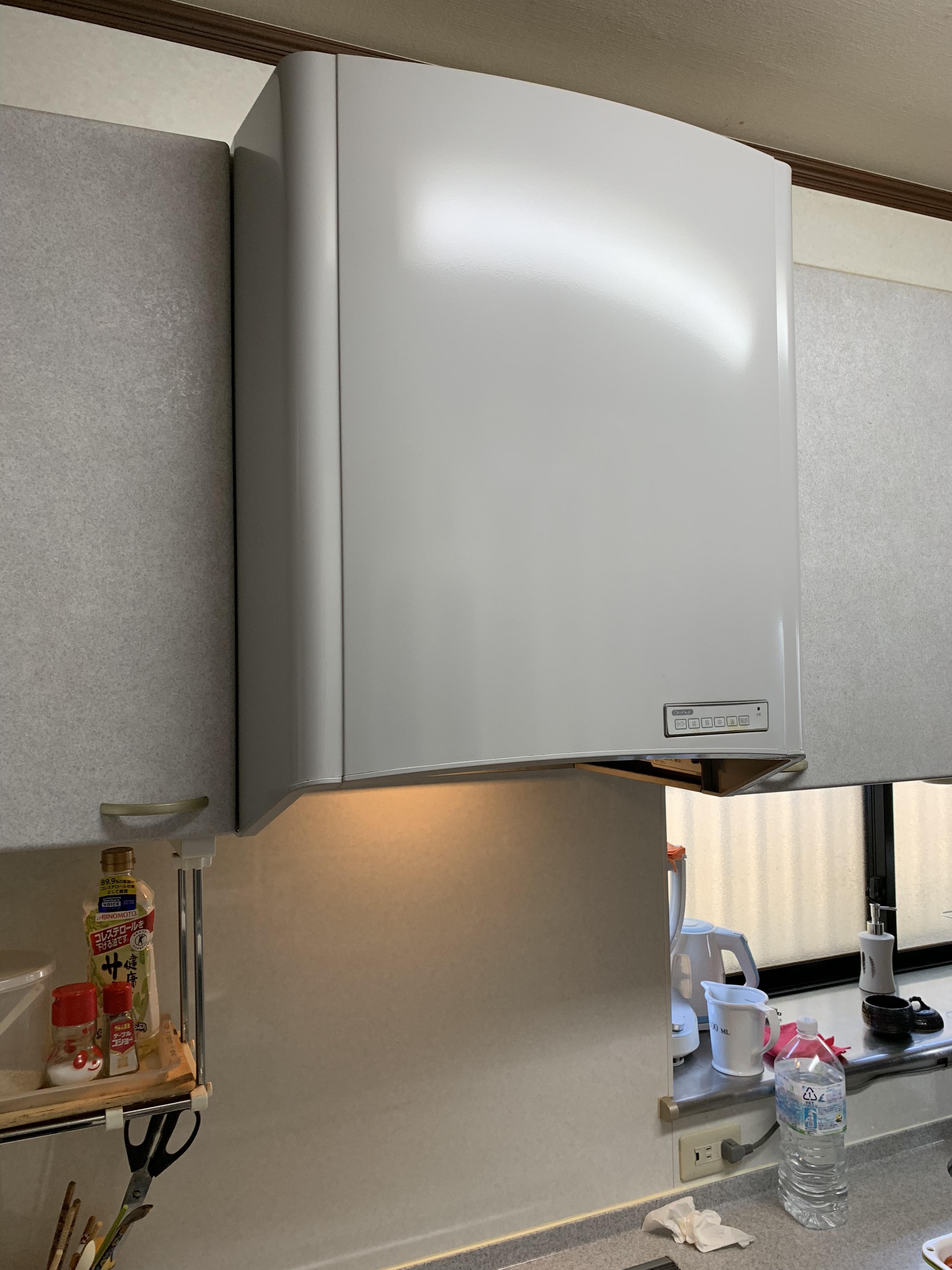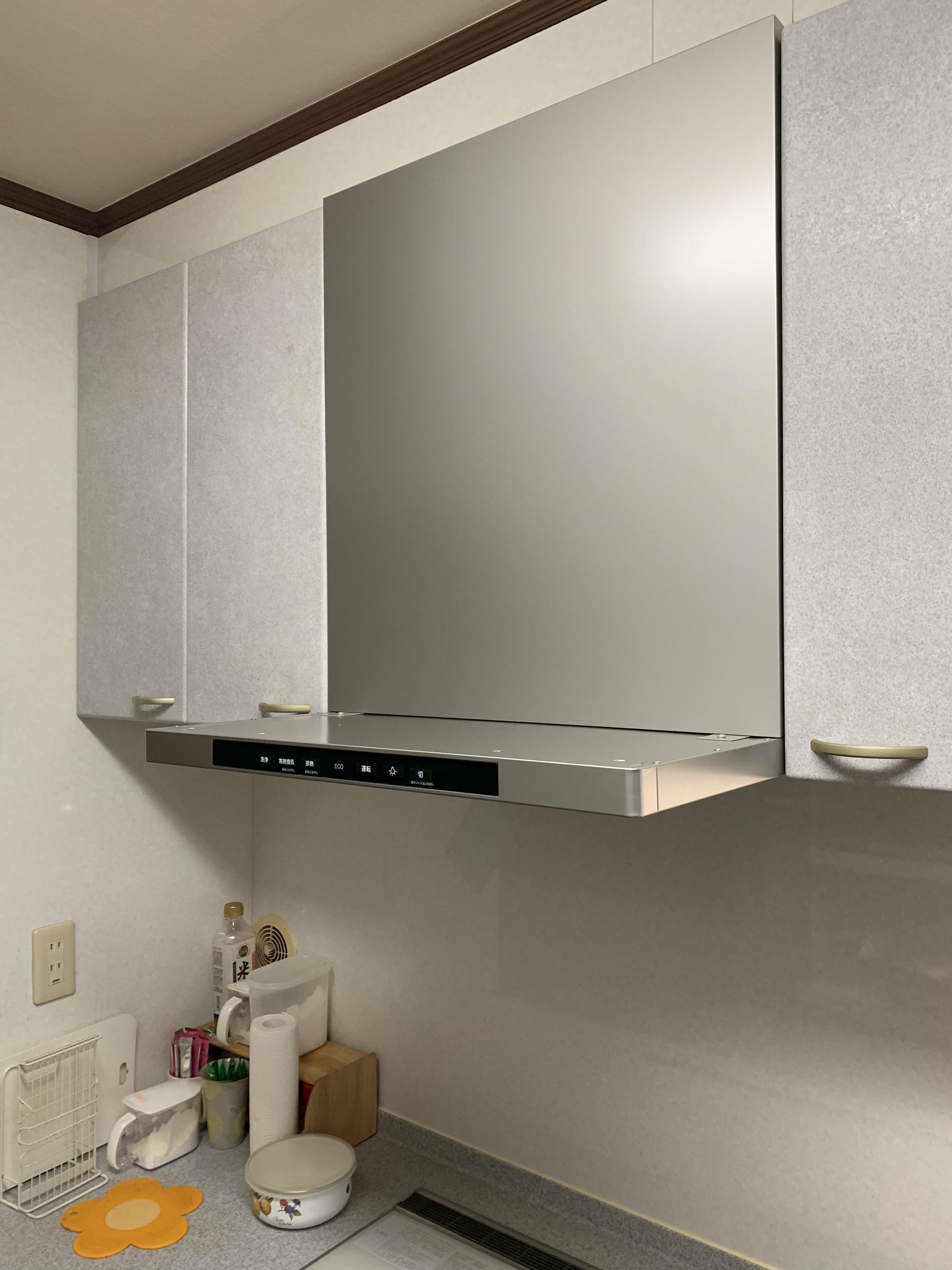 20年お使いのレンジフードの調子が悪くなり、交換のご依頼をいただきました。約10年間自動洗浄でOkな清掃性とスリムでスッキリとしたデザイン性を兼ね備えたクリナップの”洗エールレンジフード”で、奥様のお掃除負担も激減です!