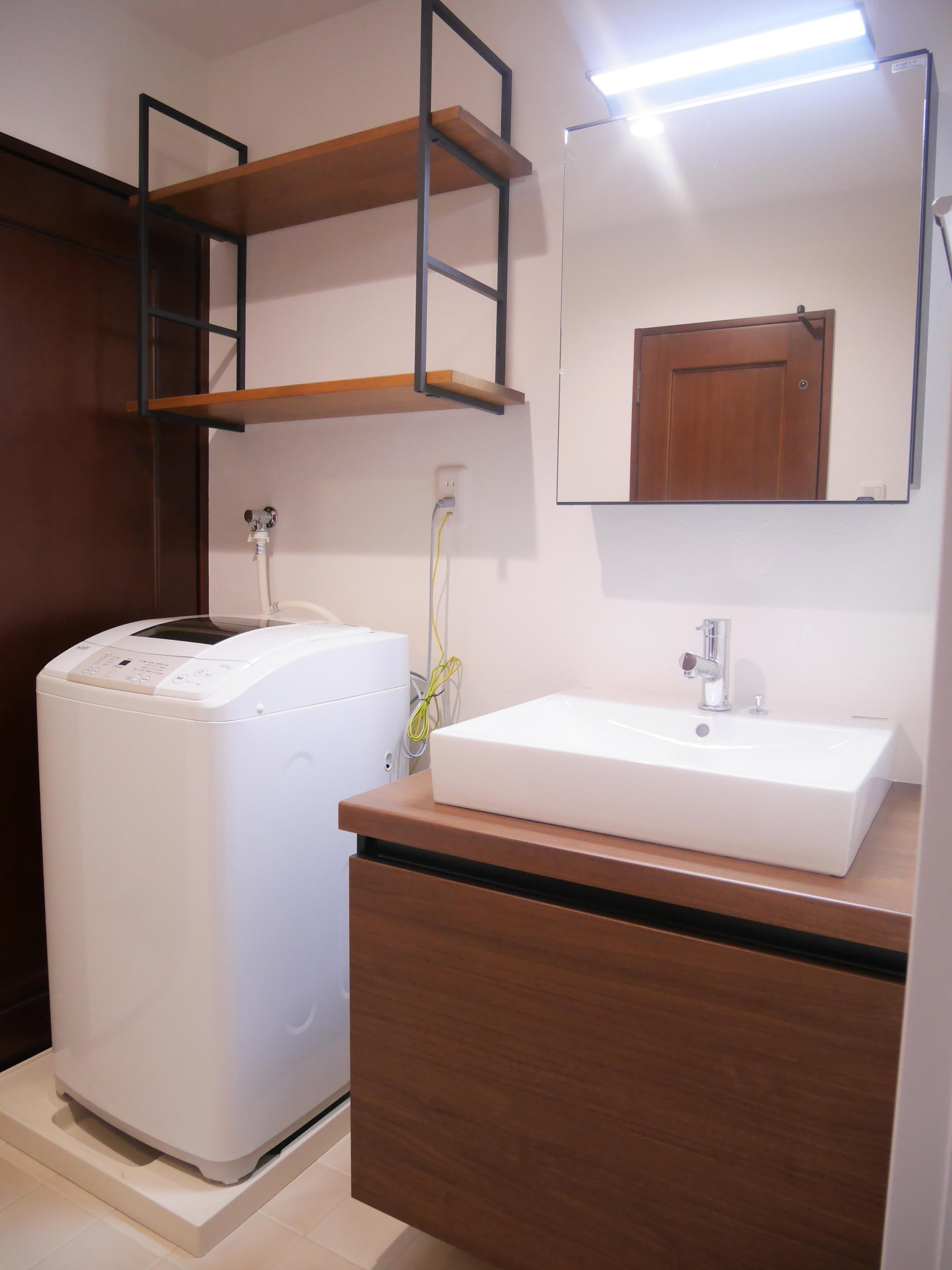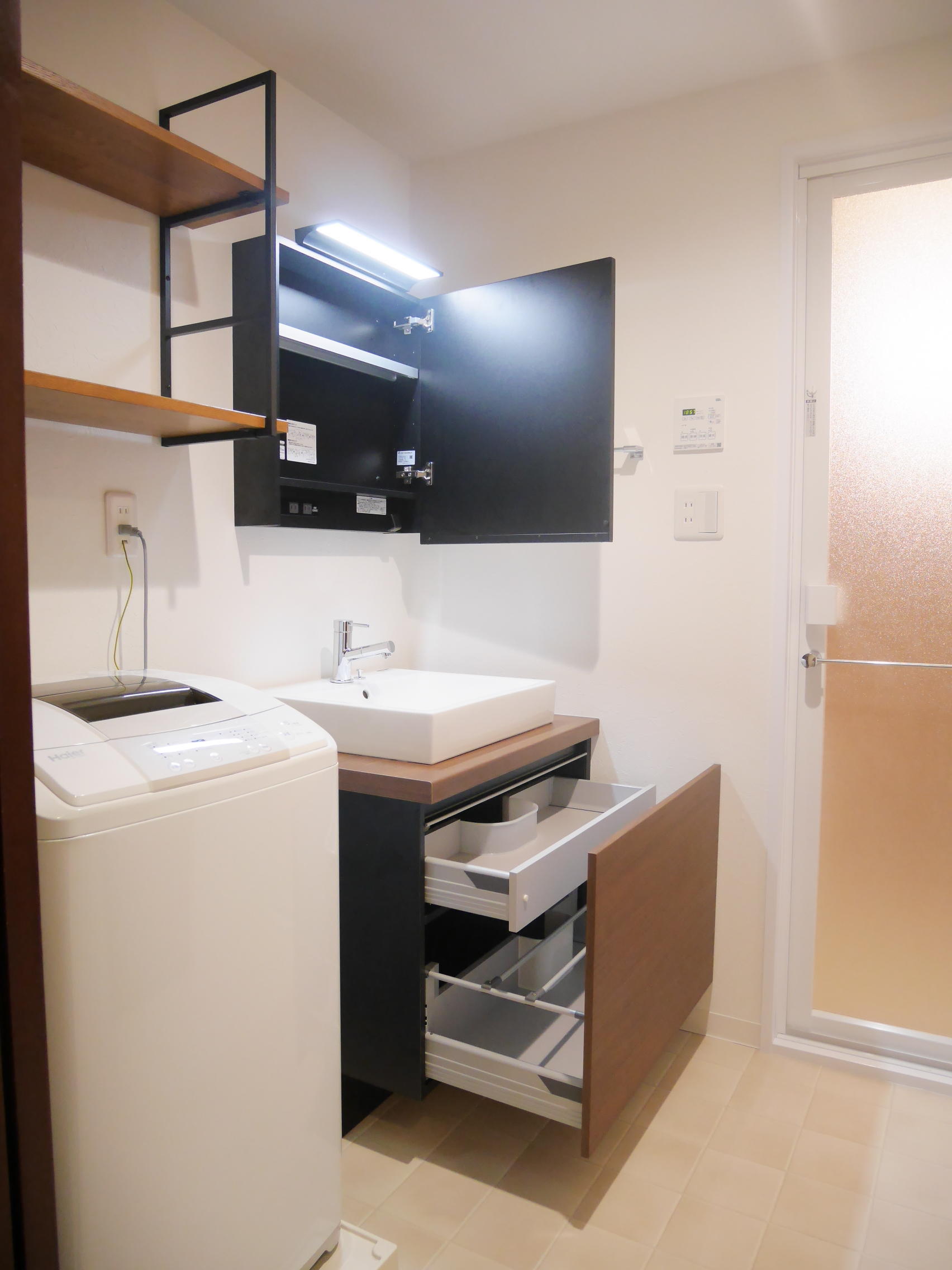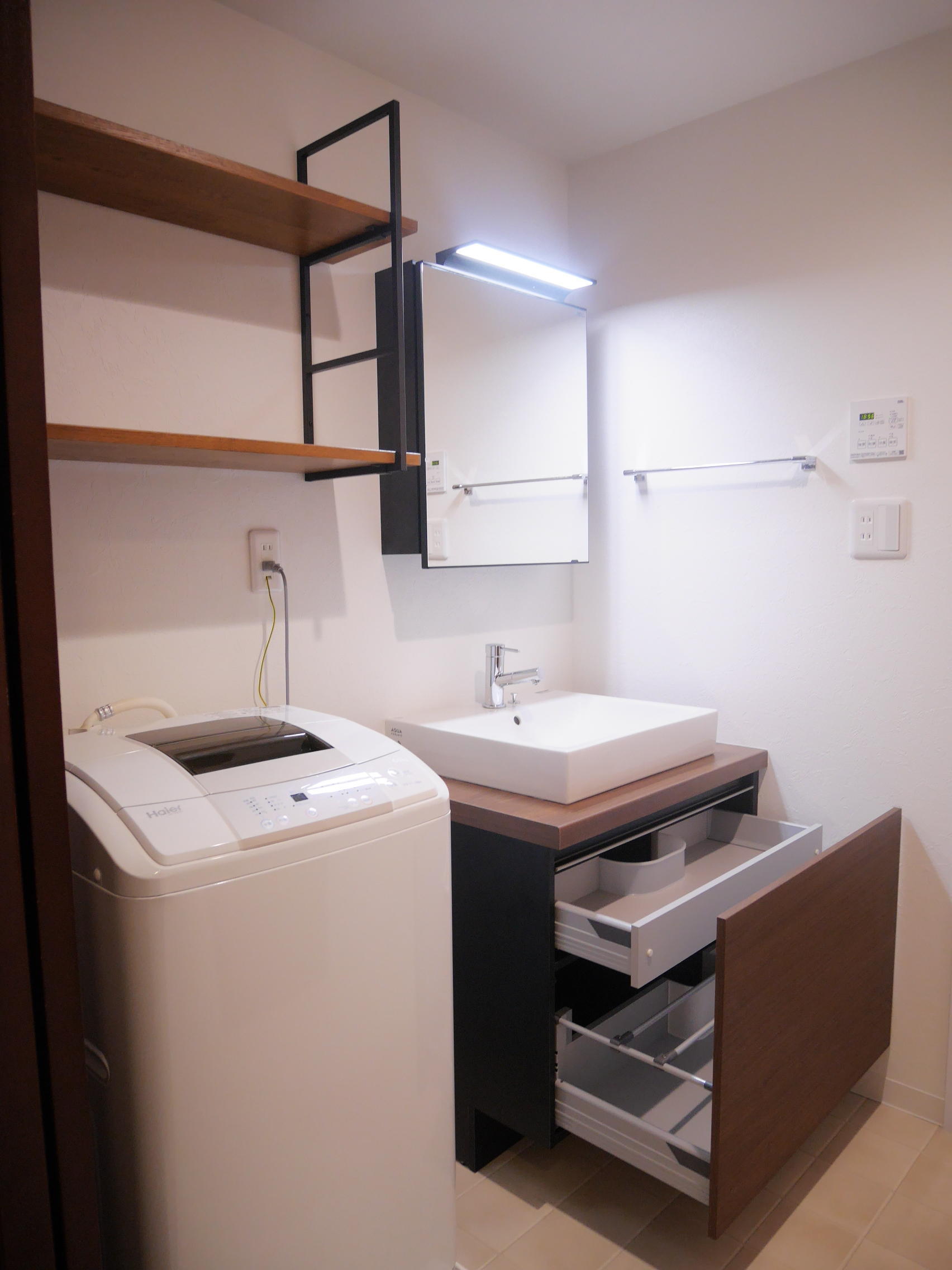 シンプルに飽きのこない清潔感のある空間にしたいけれど、せっかくリフォームするならばパーツのデザインはこだわりたいとご要望でした。無機質な素材になりがちな洗面室も、無垢の木の収納一つをプラスする事で、ナチュラルで温かみのあるお気に入りの空間になれるようご提案させていただきました。