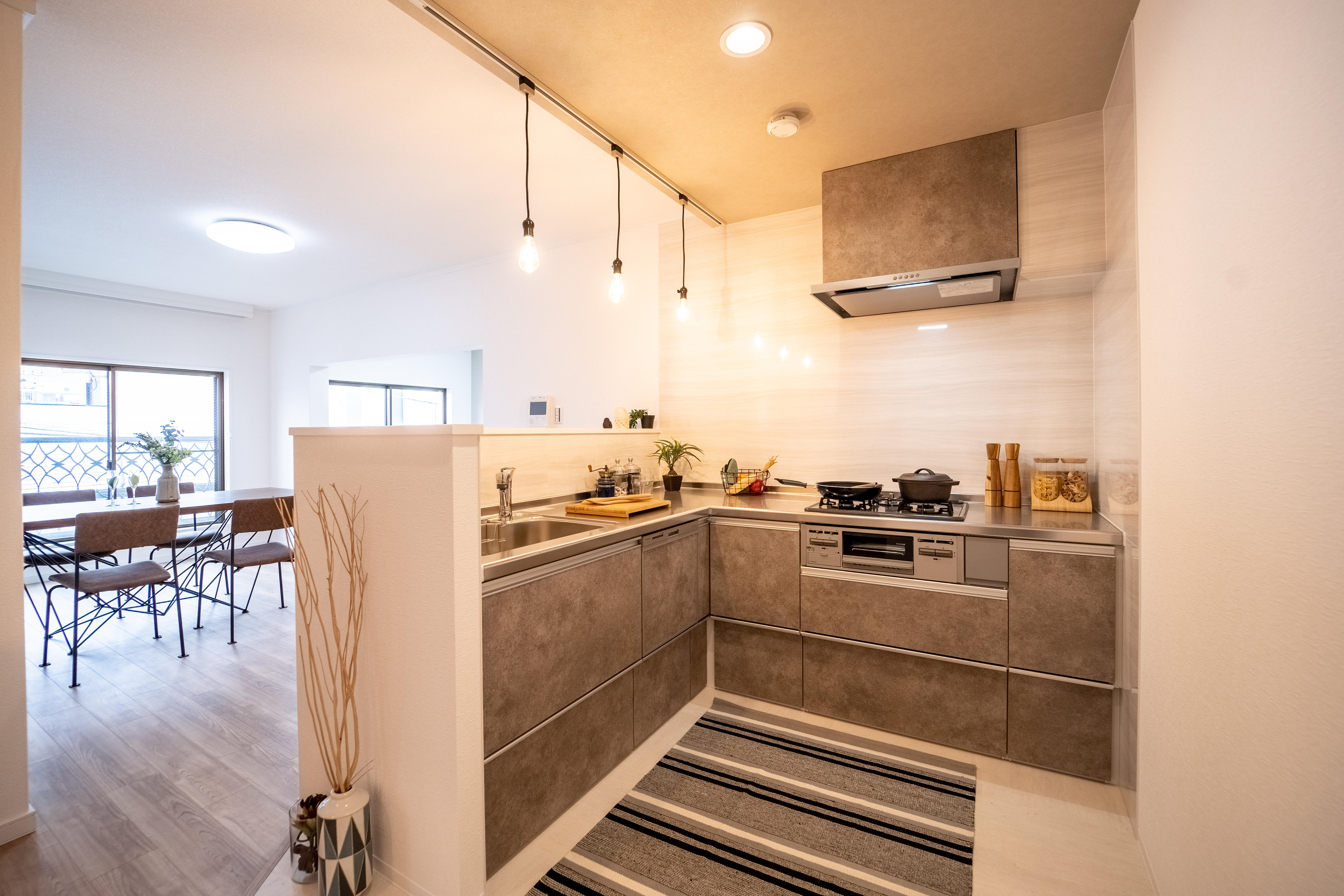 賃貸貸しいていたマンションを売りに出される事になり、リフォームのご相談を頂きました。実際に住み手の方が見えない為、どんな方が買われるか!買いたくなるか!を考えプランを考案。今回は、二人暮らしシニアや3人家族を想定し、プランニング!アクセントクロスも落ち着きあるモノをチョイスしています。