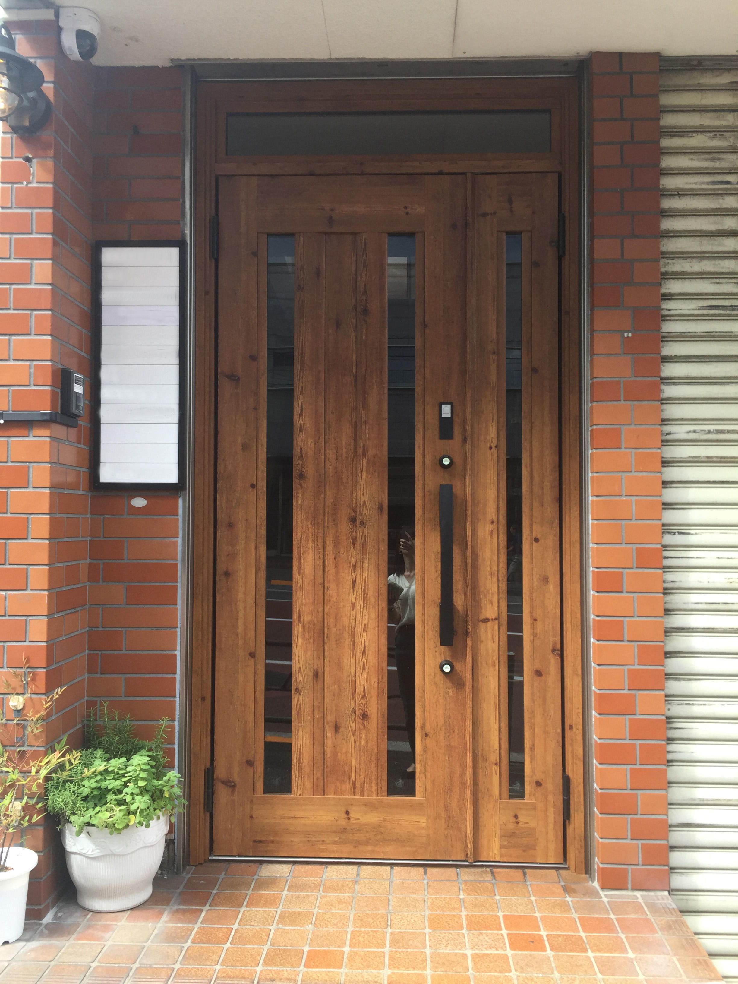 近隣の工事で勝手口からの出入りができないことをきっかけに、壁を傷めずカバー工法で施工可能なLIXILのリシェントを採用。工事も1日で完了し、防犯性も上がりました。温かみのある木目調に変わり外壁との色合いに馴染んでます。