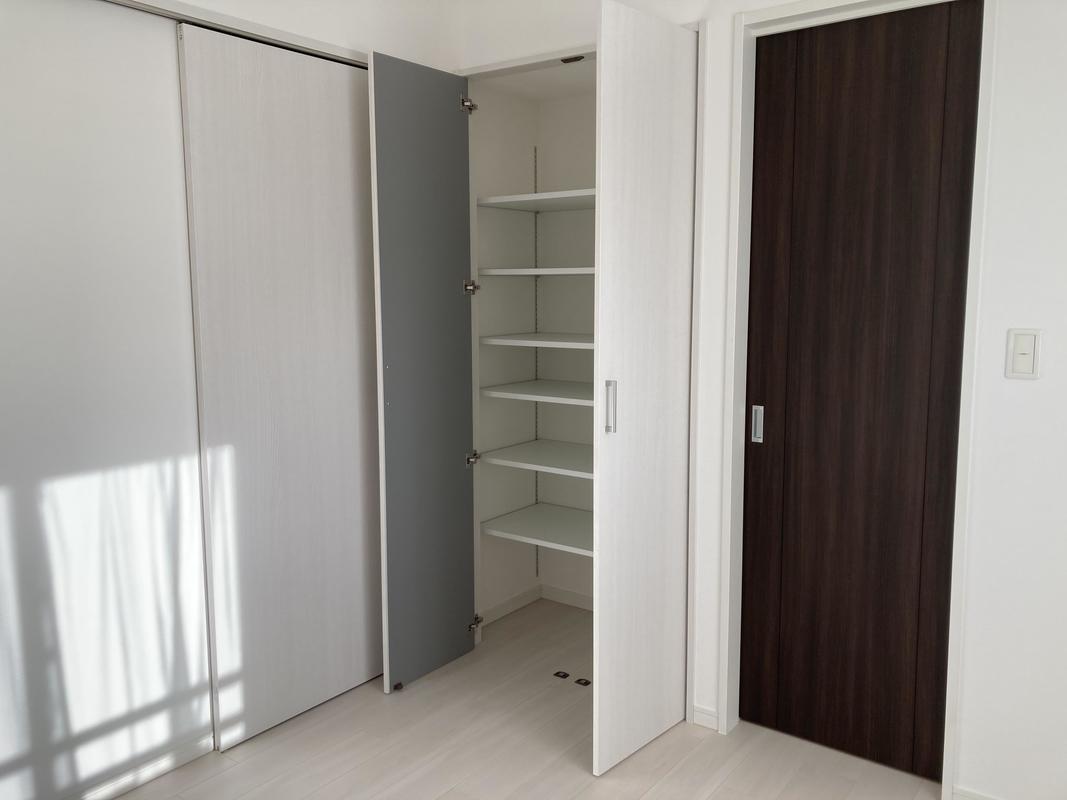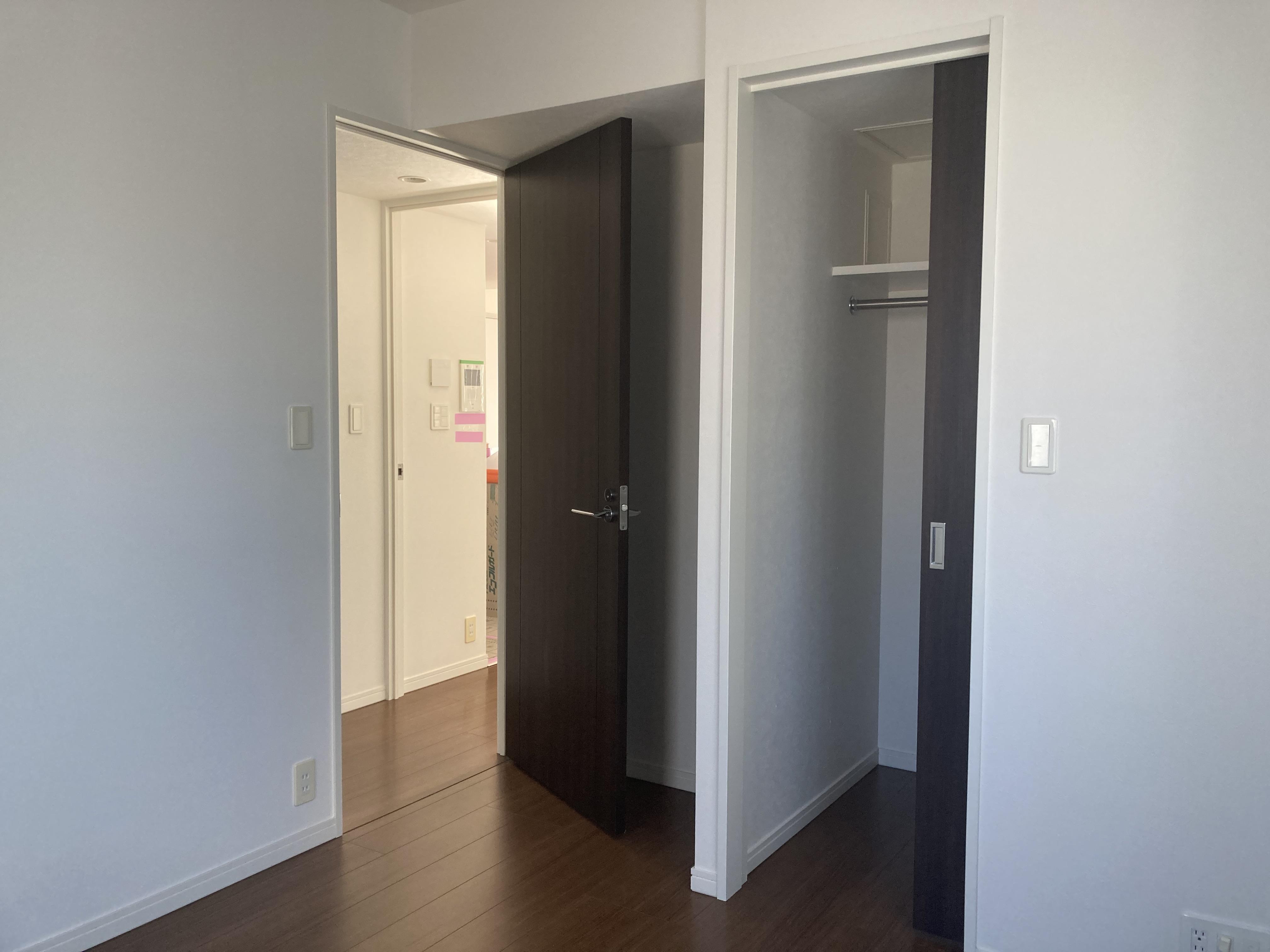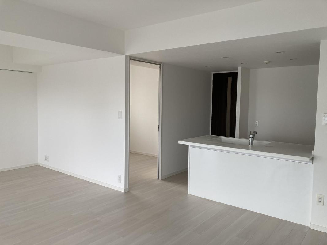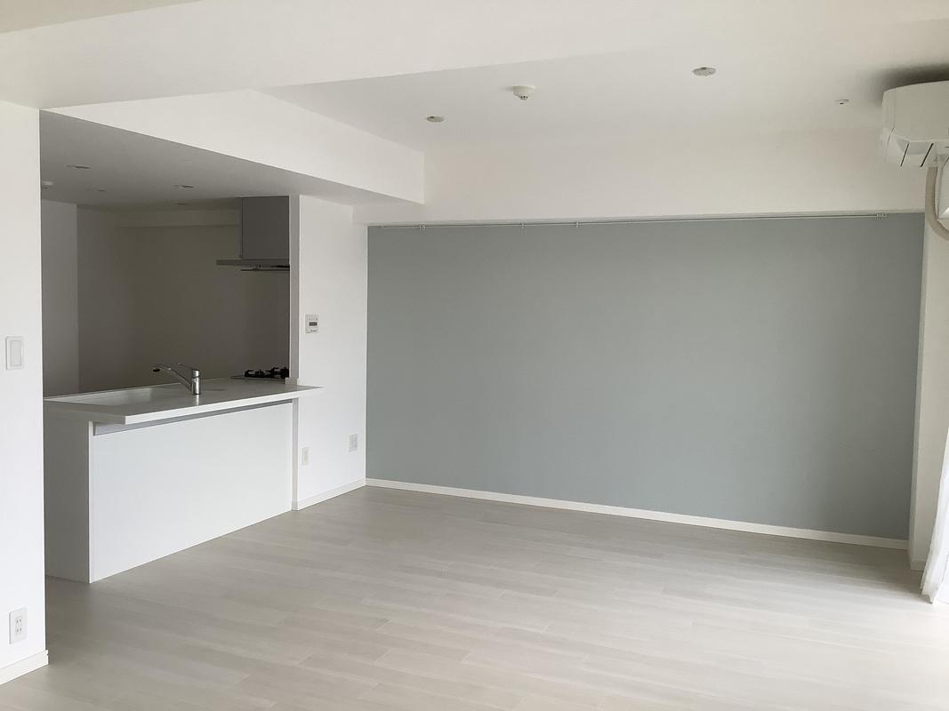 お引越しされる前に、気になる間取りをライフスタイルに合わせて予算内で変更されたいとのご要望でした。既存の床の上にフローリングを上張りし、リビングを少しでも開放的に広くするため、梁の下位置まで間仕切り壁を移設し、隣の洋室を狭めて4帖ほどのワークスペースとして活用できるようにしました。扉色も木目のホワイトになり、ベースとなる床・壁が明るくなることで圧迫感が解消されたと思います。