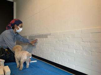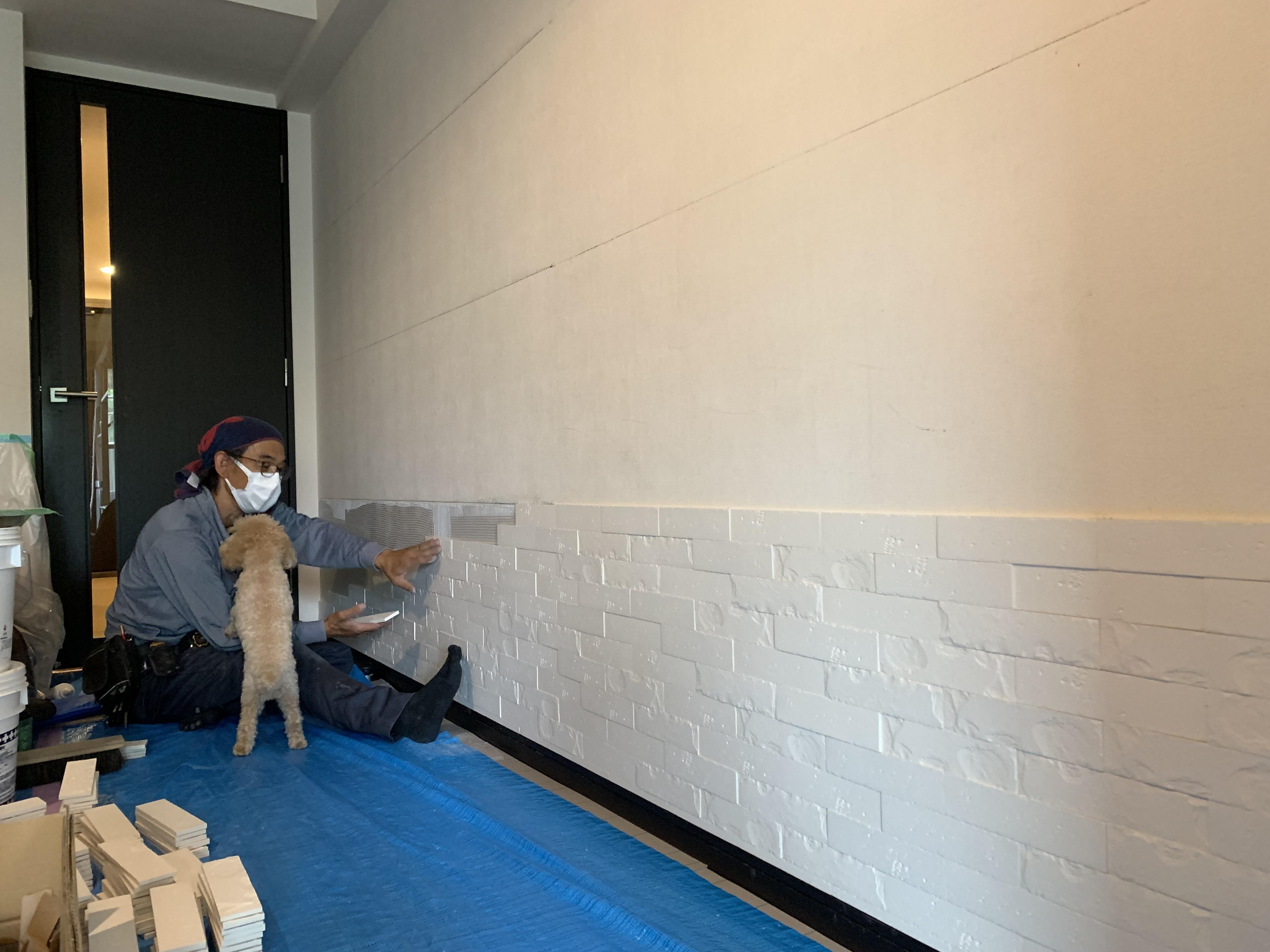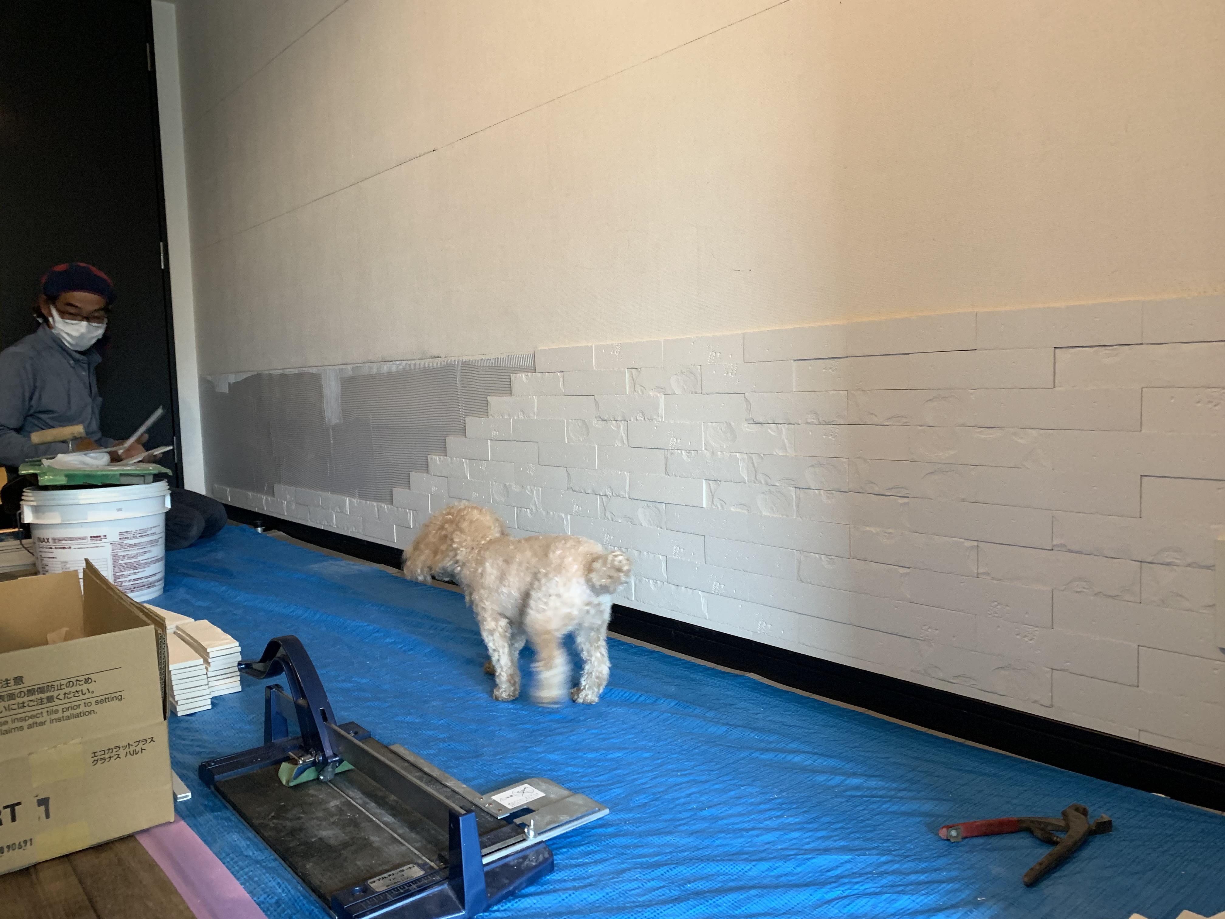在宅ワークになり、家のあちこちが気になってこられたH様。気分転換も兼ね、機能性もあるエコカラットをリビングダイニングに貼る事に! 商品:エコカラットプラス/グラナス ハルト