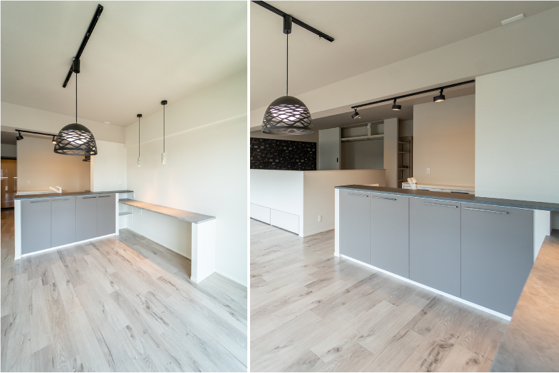 ご夫婦ともセンスが良く、毎度の打合せはとても楽しい時間でした。給湯器遅延問題勃発で、工事開始が4か月も遅れてしまいましたが、逆にその間、造作の色や取っ手の細部までトコトン選ぶ時間に費やせ、お施主様からはラッキー♪♪♪と…、また解体後に、寸法が収まらない&段差が出来てしまうなどなど様々な障害が発生し再提案させて頂いた際は、逆にいい感じになったわ♪♪♪とのお言葉を頂けました。また、工事中の現場にて何度かお打合せもさせて頂き、お施主様と職人が顔見知りに…お施主様の人柄の良さもあり、職人さんもいつも以上に気合を入れて工事してくれた、とても雰囲気の良い工事現場でした! リフォーム工事は、お客様・私たち・職人の方々皆で作るものだ!と言う事を再認識させて頂きました。今後とも、末永くよろしくお願い致します(^▽^)/