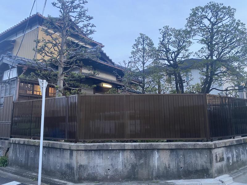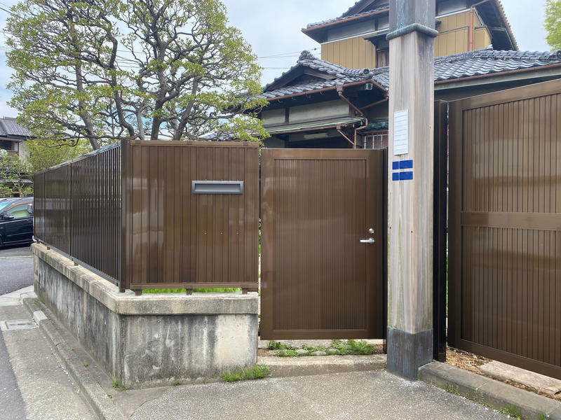 木造のフェンスと門扉、老朽化のため一新したいと工事のご依頼を頂き、リフォームさせていただきました。製品は中が見えない格子、お客様邸に合うブロンズ色でと打合せを行いご提案させていただきました。