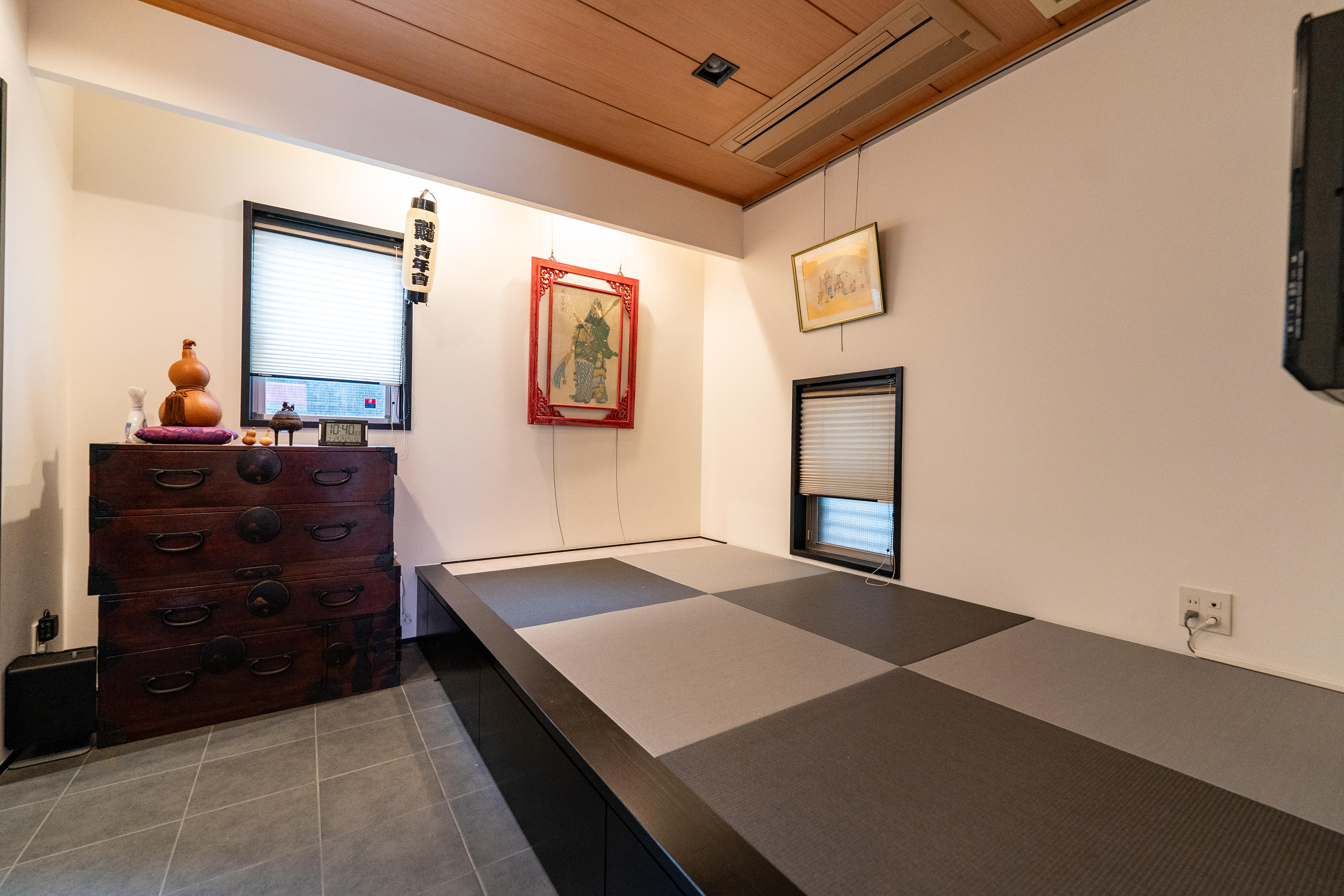 ユニットバス・トイレは既にLIXILショールームに行かれ、決定済みの状況でのお問い合わせでした。その他に、和室2間を一続きにしたタイル床の和モダンテイストへの変更やポイントの色変更などなど…ご希望を頂き、工事をさせて頂きました。