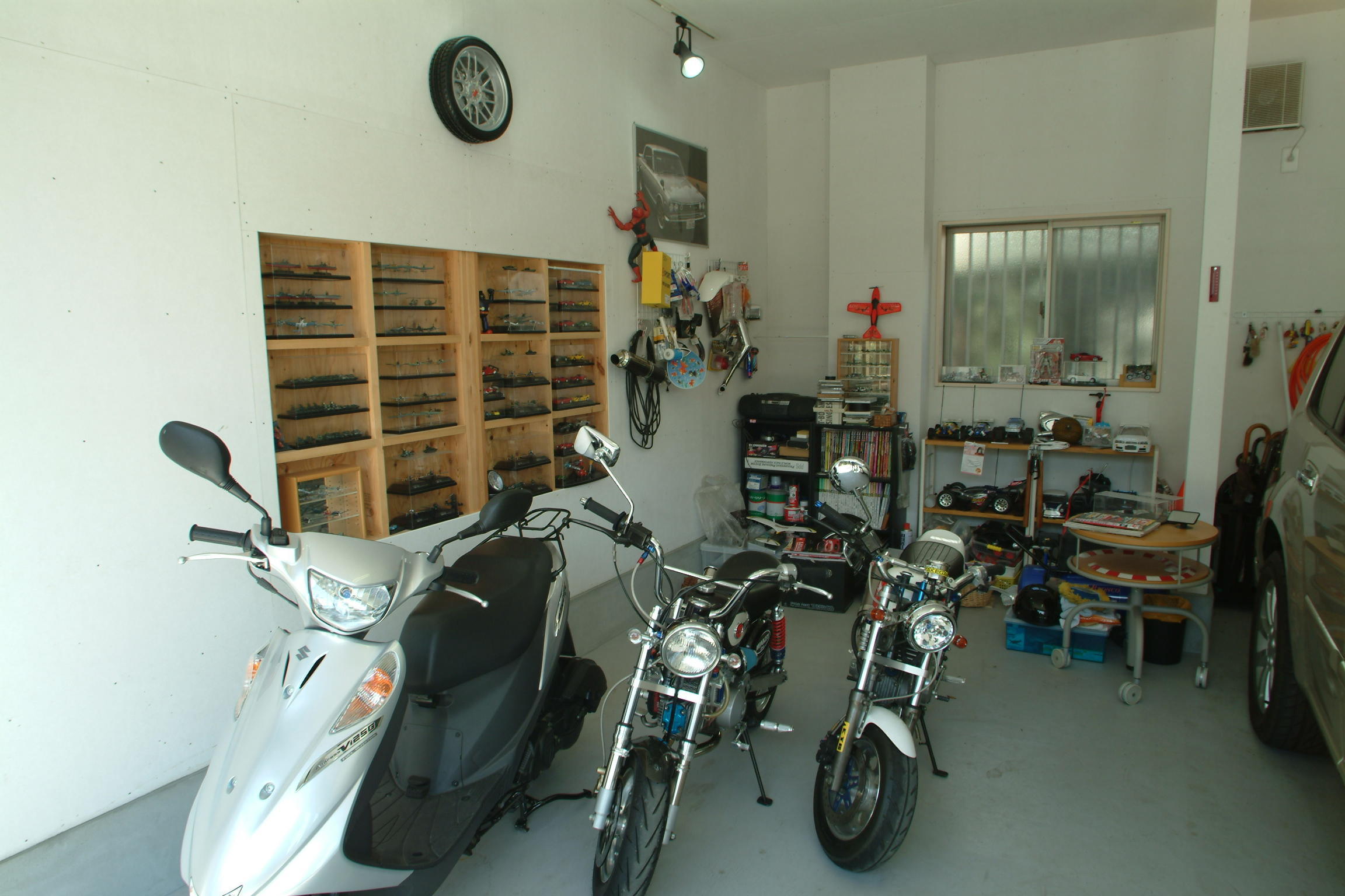車が好きなK様。ご自宅には自動車が2台、バイクが3台ちゃんとした駐車場をつくろうと計画、でも平面の駐車場だけではもったいないということで2階を住まいにすることに。ご高齢のお母様と一緒に暮らしているK様ですから、母屋に新しい住まいをつなげる増築という手法を選びました。