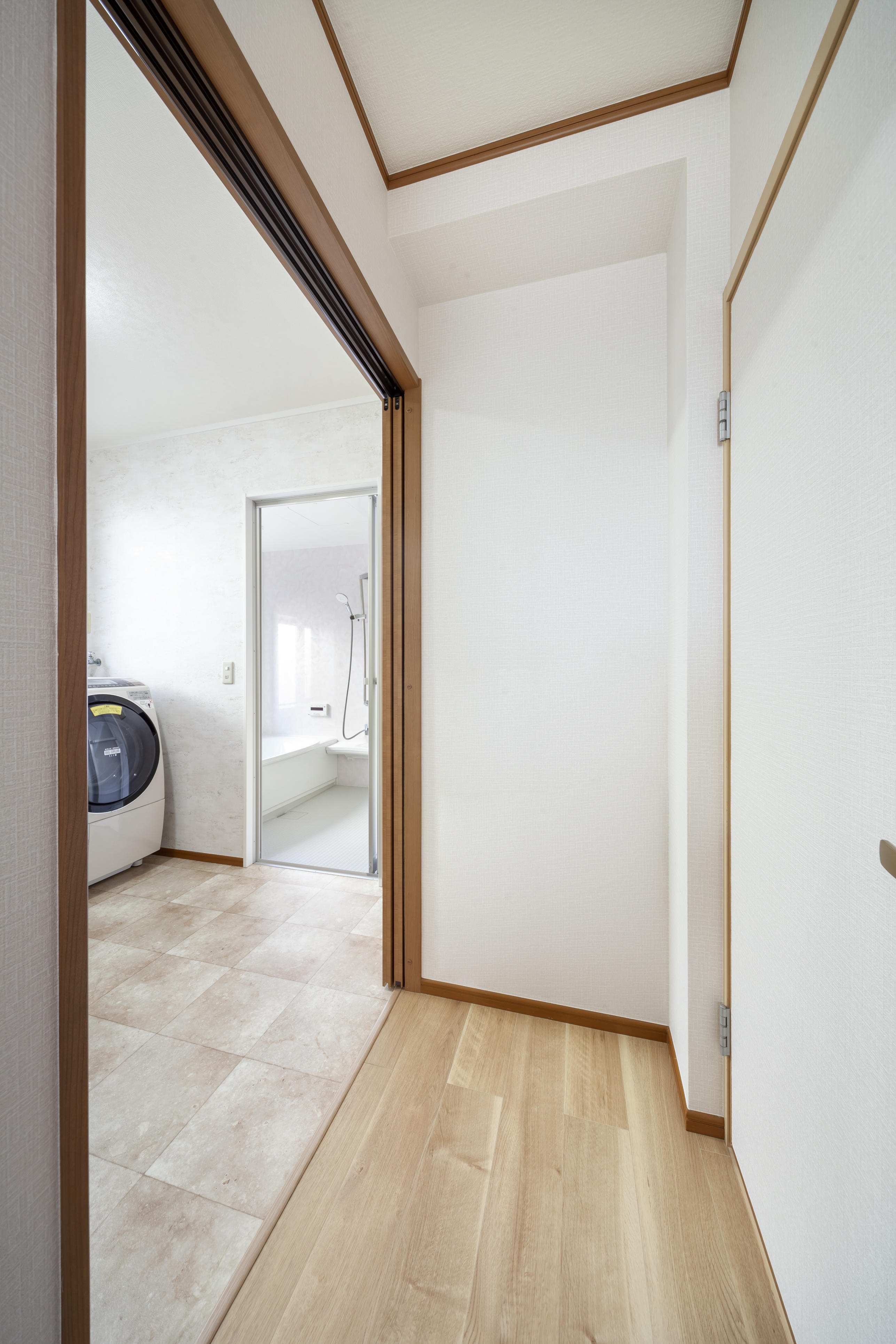 タッチレスの水栓を採用し、洗面台の高さを上げるなど、手洗いの介助がしやすいよう工夫を施しました。 また、洗面台には引き出し式の収納が増え、使い勝手も向上。 車椅子での出入りがしやすいよう間口を広げ、開放感も生まれました。