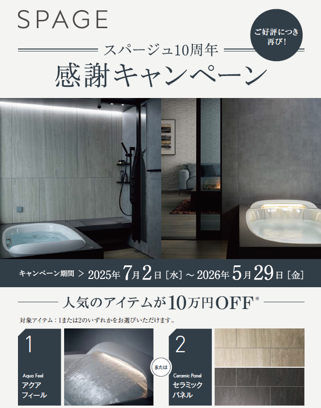 この度、大変ご好評をいただいておりますLIXILシステムバスルーム「スパージュ」が10周年を迎えることができました。