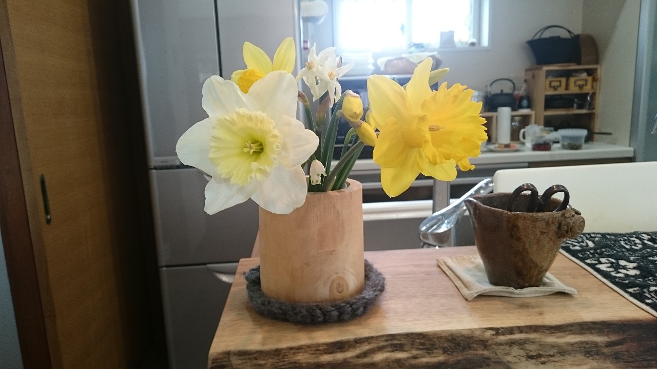 弾いていただきました。お庭で咲いているスイセンの花も、きれいに生けられていて