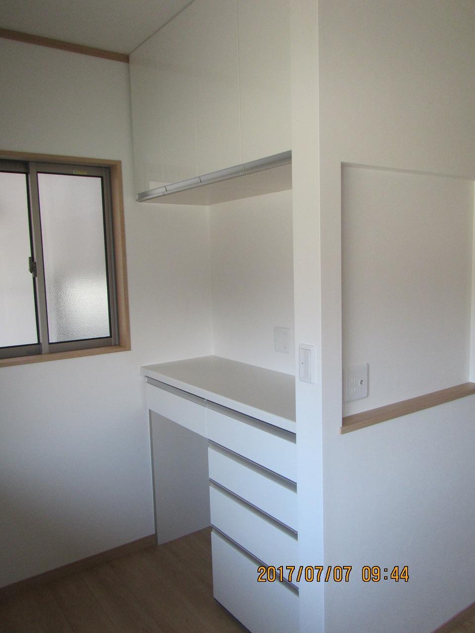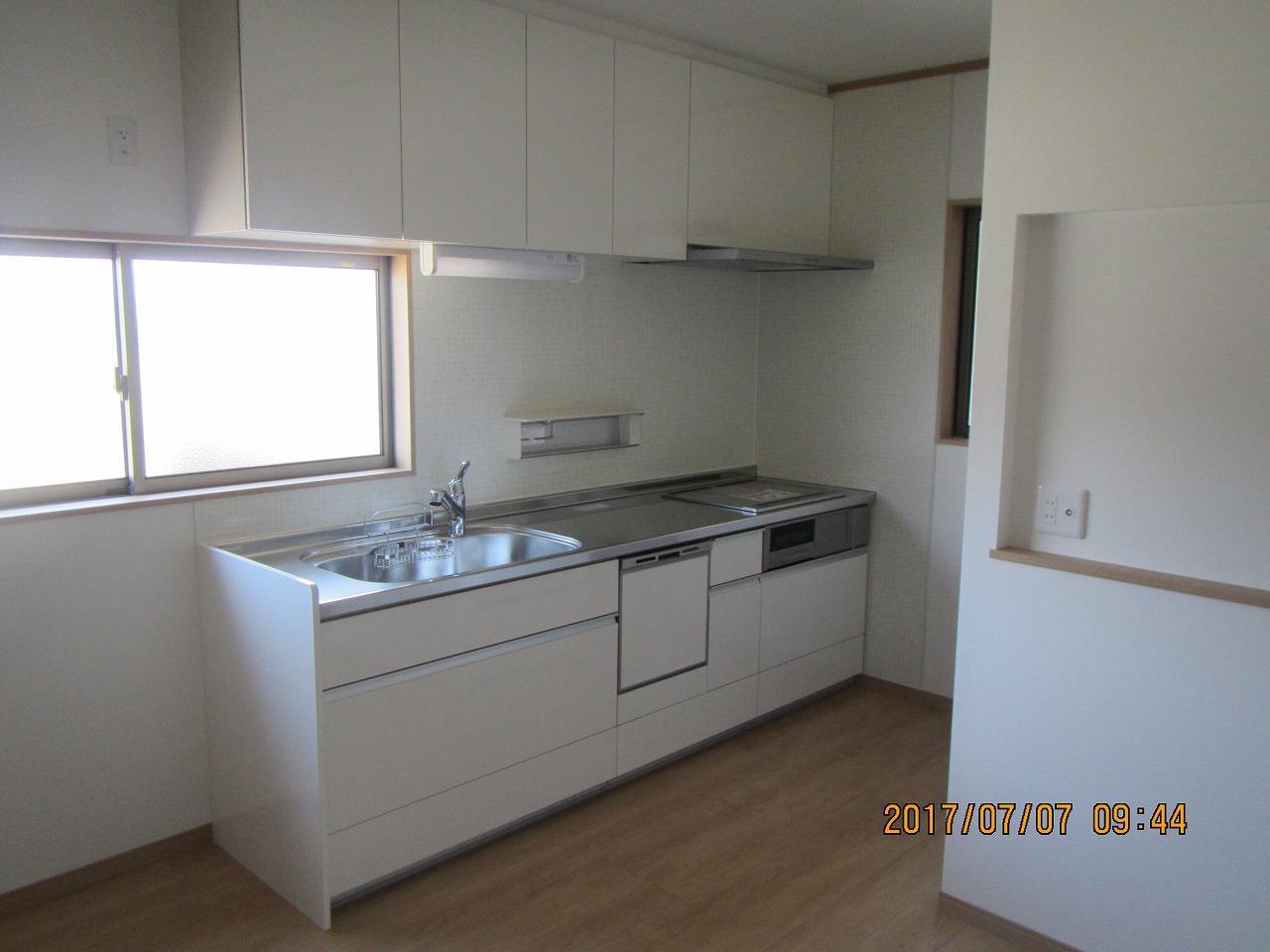 内部工事はキッチンや洗面台などの設備機器も付いてクリーニングも終わりました。キッチンは収納量がたくさんあり他に食器棚を置く必要がないぐらいです。