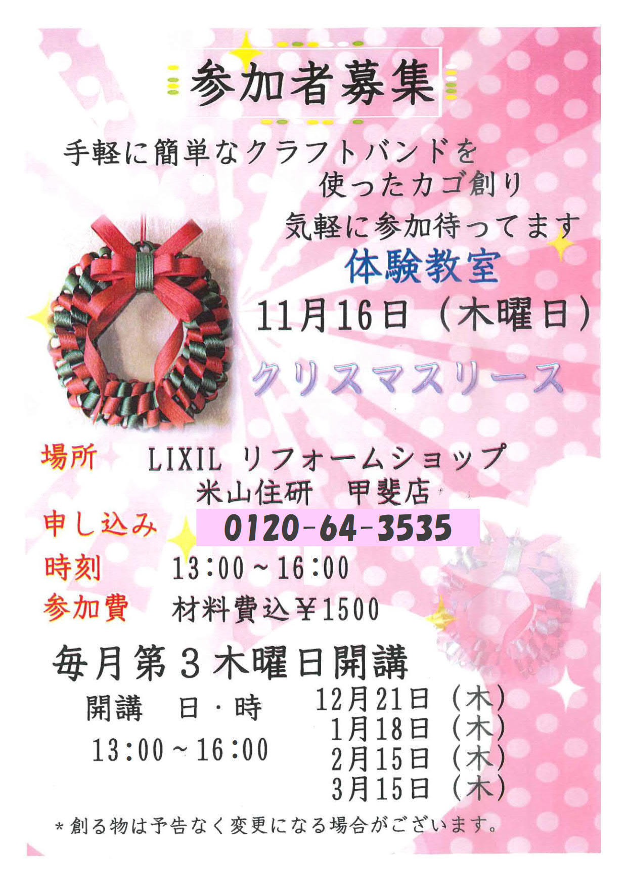 一覧へ戻る次回のお教室はクラフトバンドでつくる