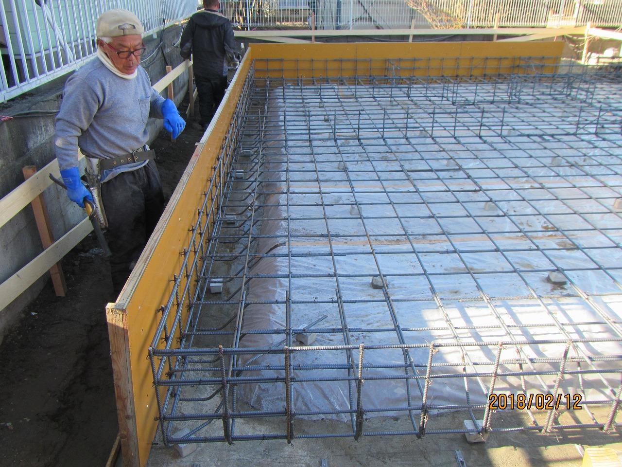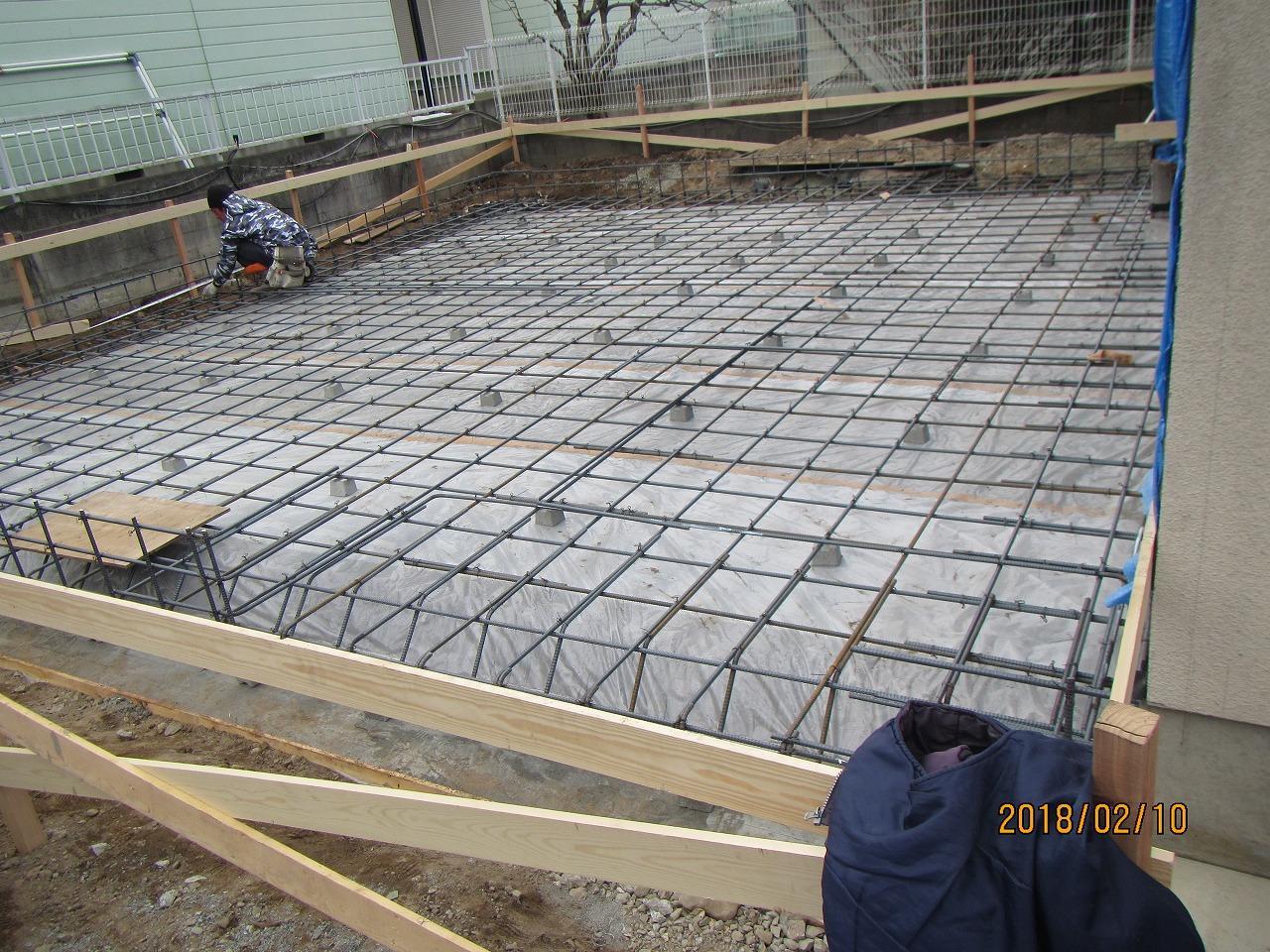 配筋工事も進み、もうすぐ耐圧盤のコンクリートを打設します。
