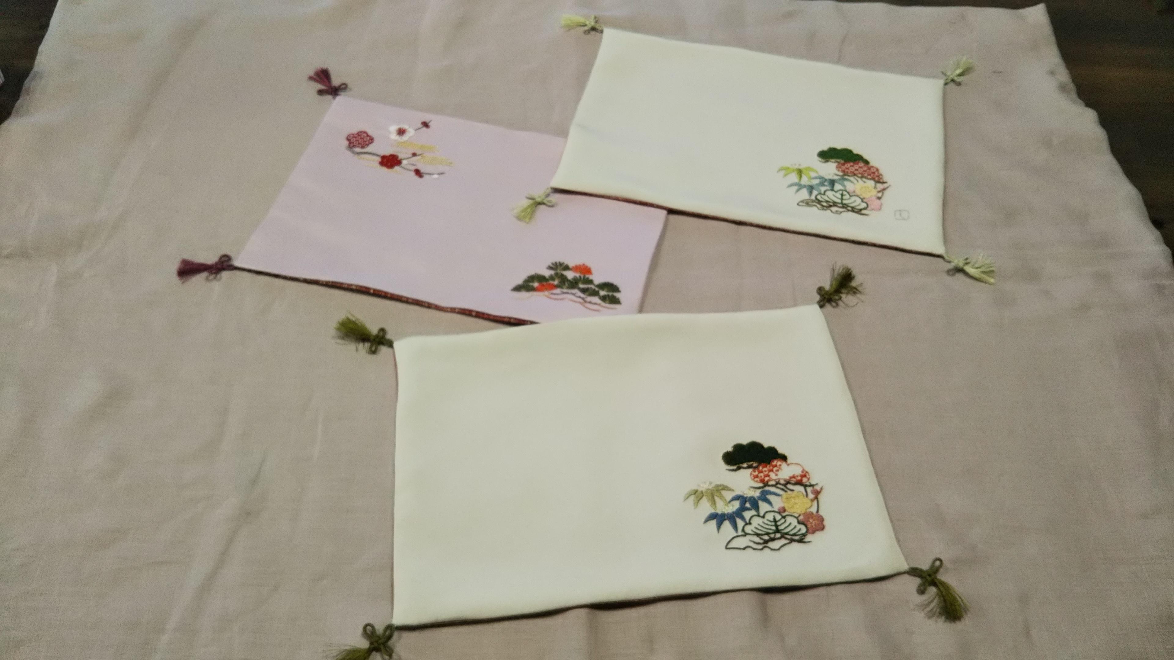先月のかざり結びに続き、今回は刺繍とのコラボで敷き布の完成を