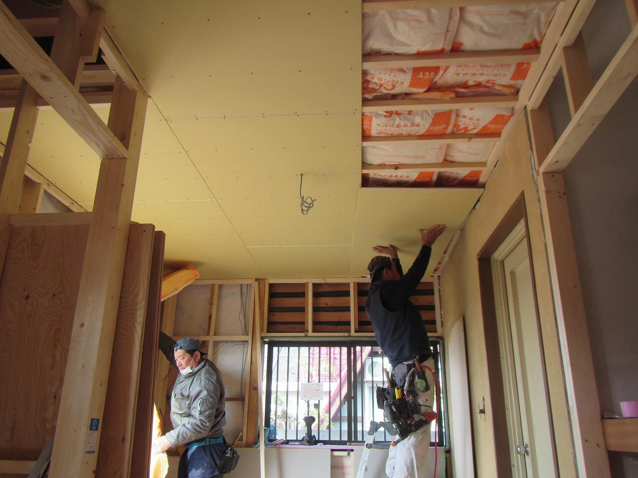 内部工事の方は大工工事もほとんど終わりただいま内装工事をおこなっております。