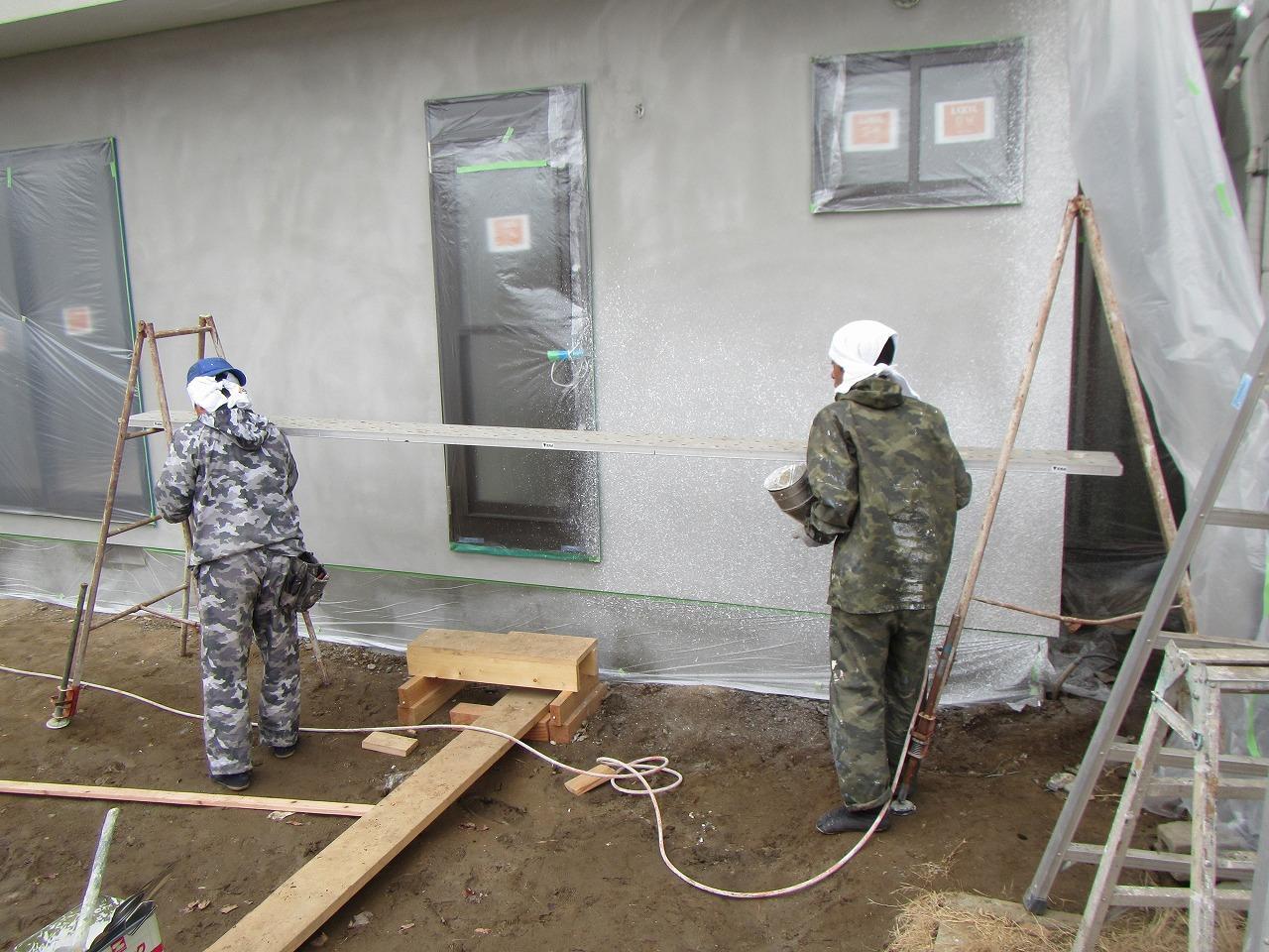 外部工事は外壁のモルタル塗りも終わり仕上げの塗装工事をおこなっております!!