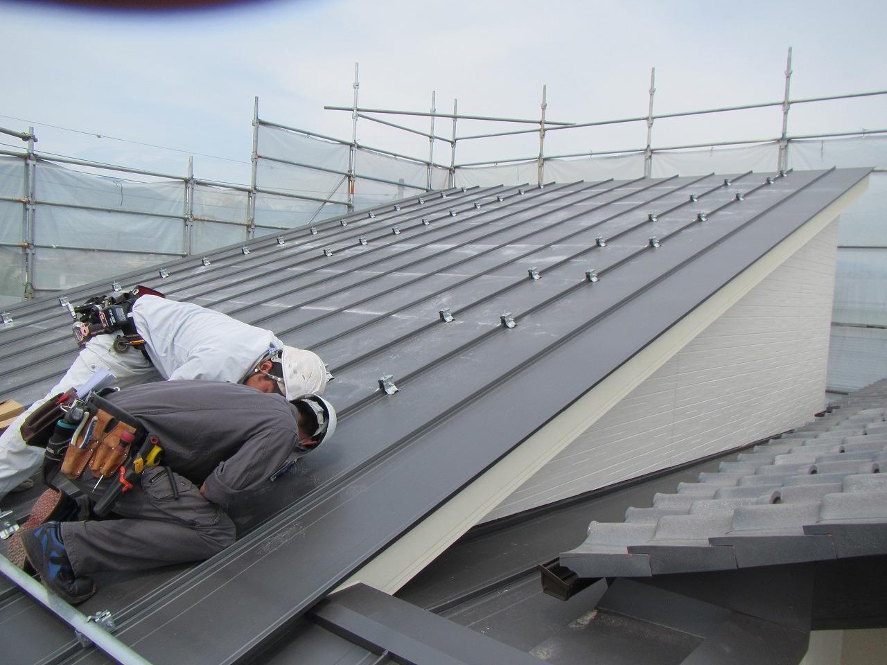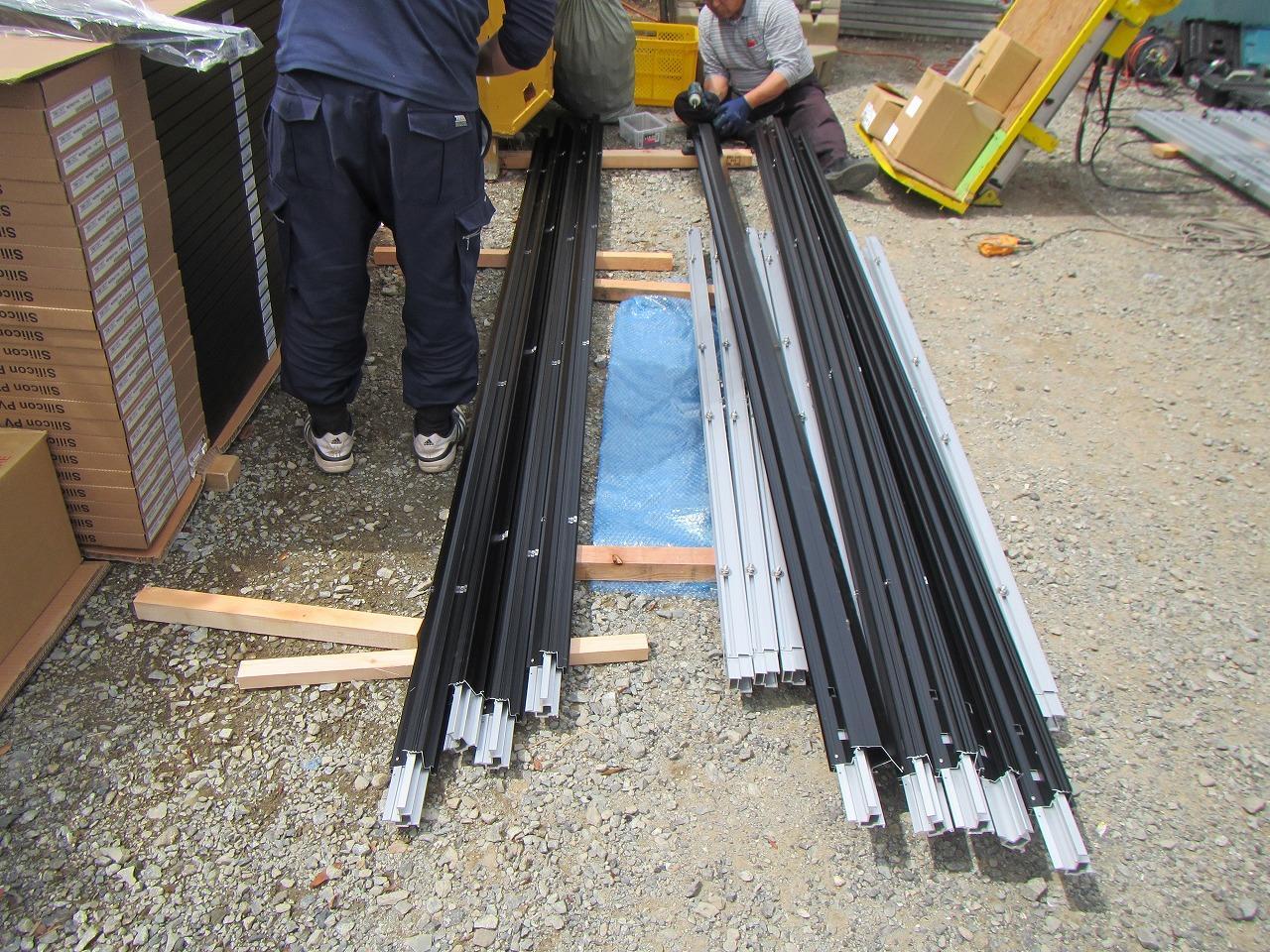 今日は屋根の太陽光の工事もしてくれています。片流れ屋根なのでたっぷりの容量が乗りますね!