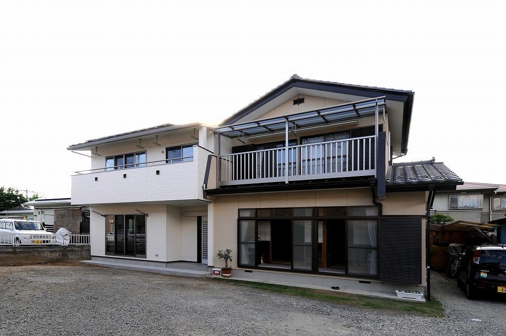 既存のお住まい(右半分)に2階建て住宅(左半分)を増築しました!